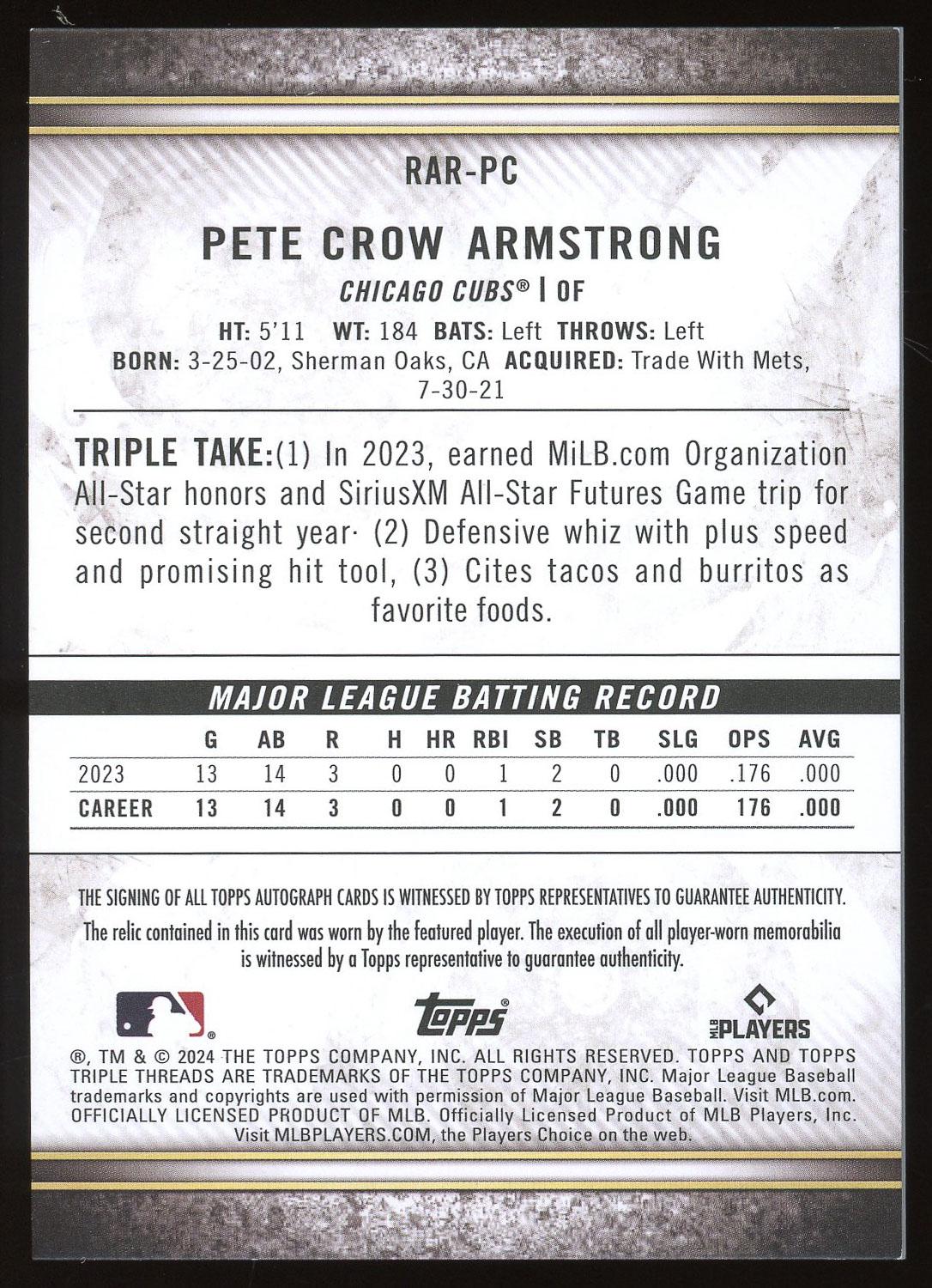 Pete Crow Armstrong 2024 Topps Tribute 3 Piece Rookie Patch Autograph Card 45/75!