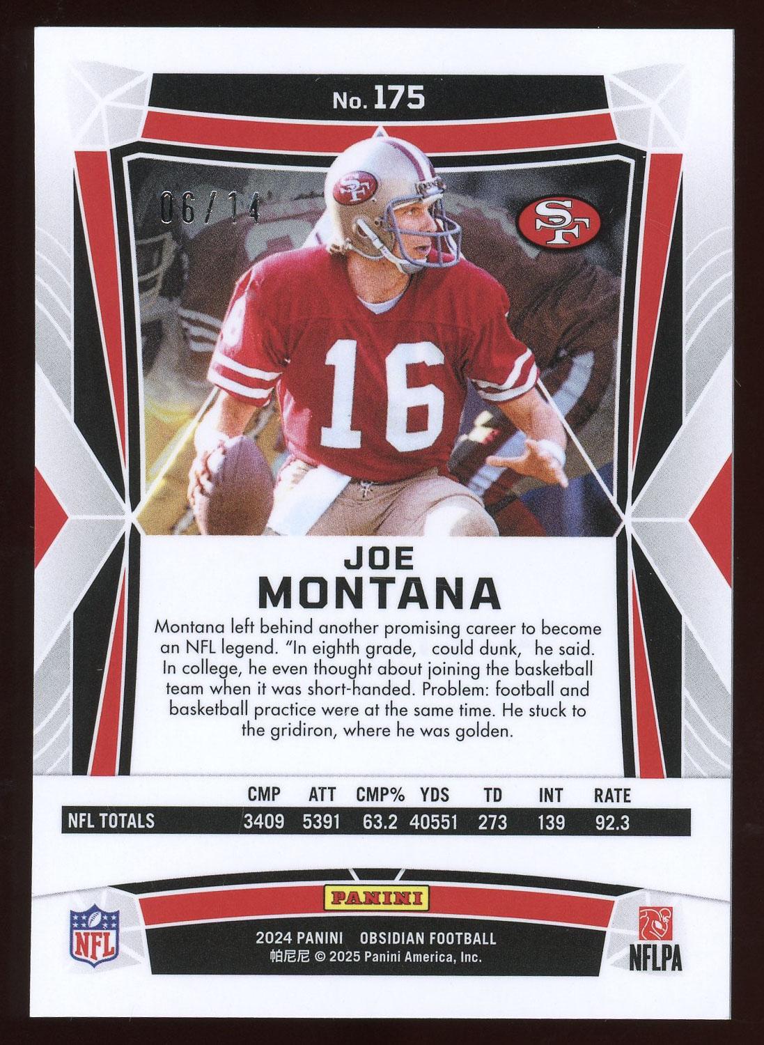 Joe Montana 2024 Panini Obsidian Orange Card 6/14!