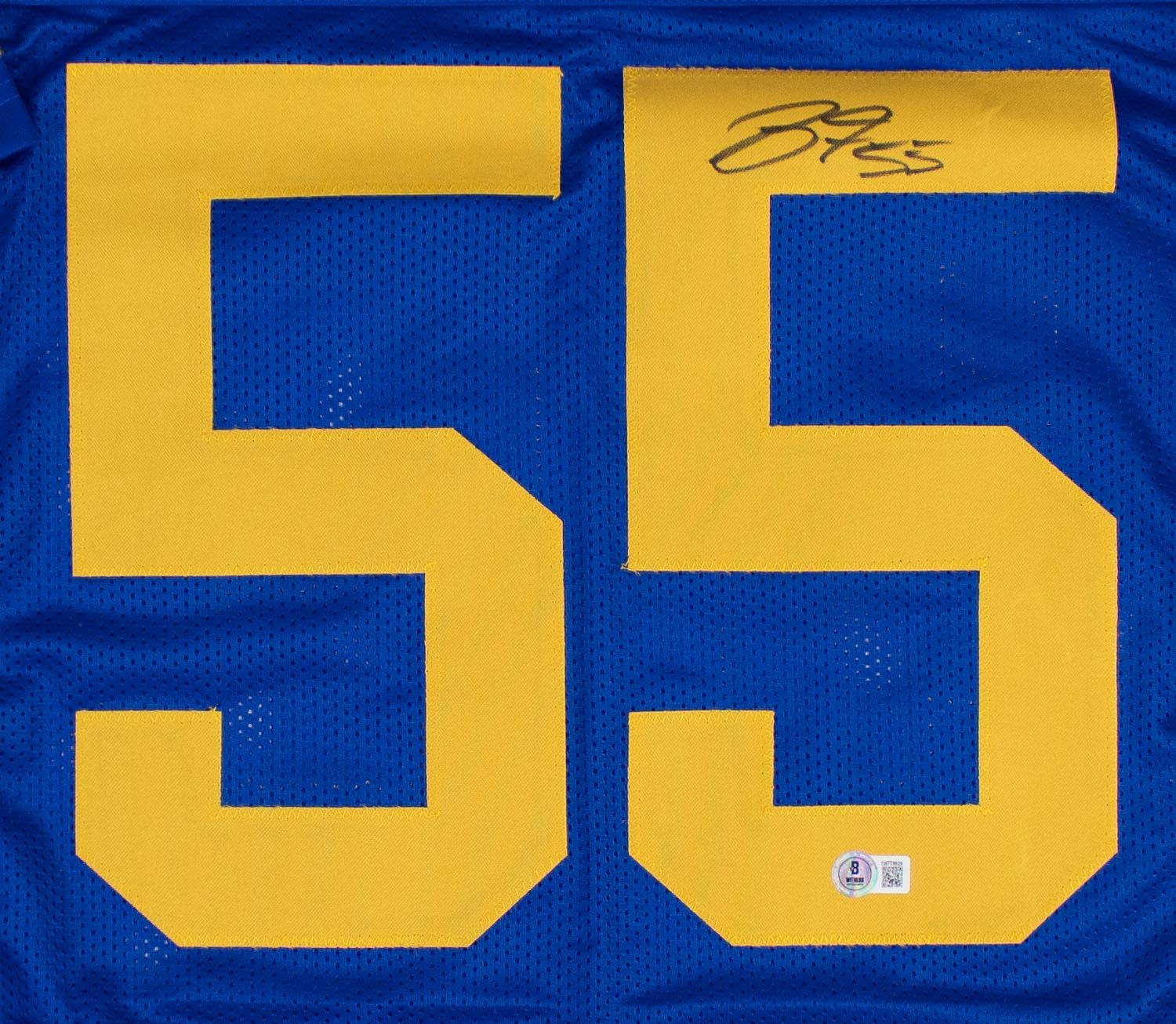 This autographed jersey has been personally hand-signed by Braden Fiske of the Los Angeles Rams. This autograph is certified by Beckett Authentication Services (BAS) Witness Certification. That means that a Beckett representative was present when this item was signed. It comes with the numbered authentication hologram with a QR code that verifies the authentication on the Beckett website. Custom on-field style jerseys are a more affordable option for autograph seekers. These jerseys do not have any brand name or tags and are made in the Philippines. They feature stitched on names and numbers and are made to look very similar to the on-field jerseys that the players wear. These custom jerseys are very commonly used in the memorabilia industry.