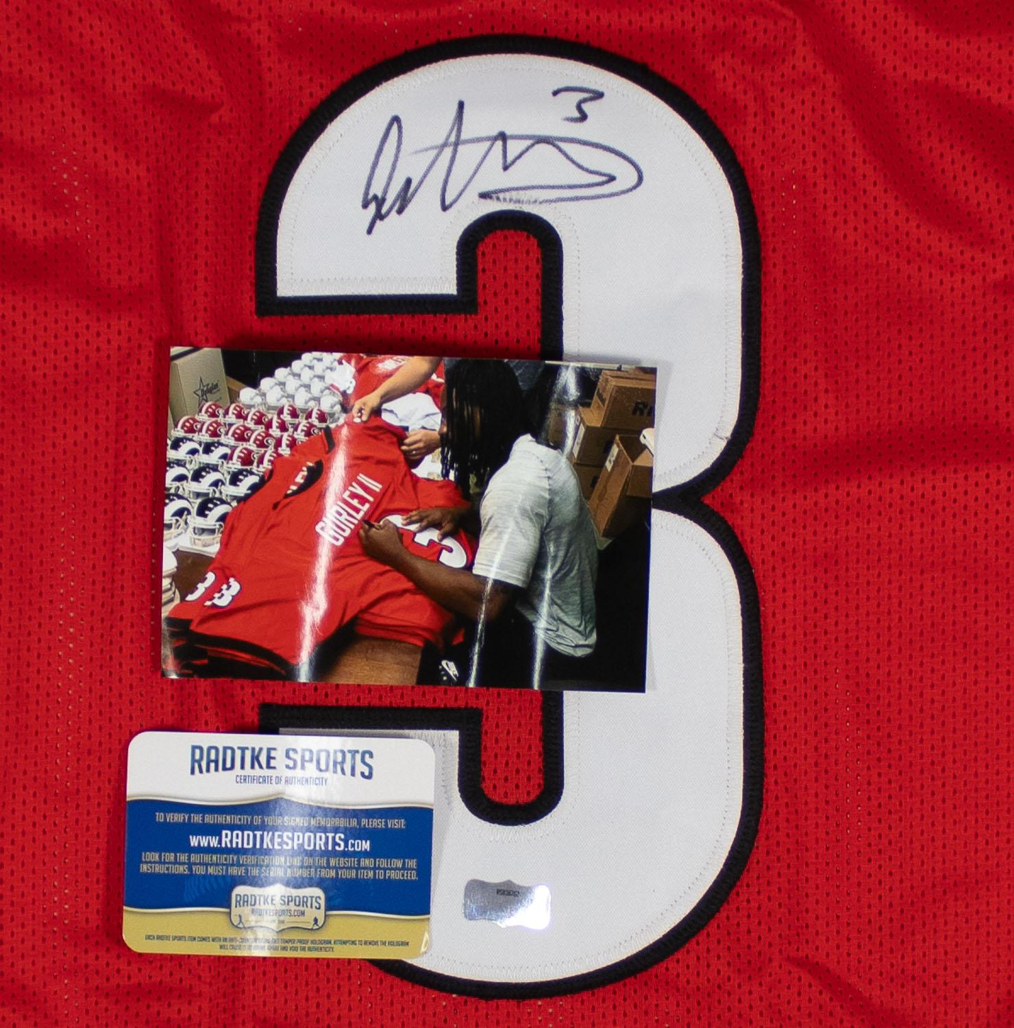 This autographed jersey has been personally hand-signed by Todd Gurley of the Georgia Bulldogs. This autograph is certified by Radtke Sports. It comes with the Certificate of Authenticity and matching numbered hologram, which can be verified on their website, Radtkesports.com. Custom on-field style jerseys are a more affordable option for autograph seekers. These jerseys do not have any brand name or tags and are made in the Philippines. They feature stitched on names and numbers and are made to look very similar to the on-field jerseys that the players wear. These custom jerseys are very commonly used in the memorabilia industry.