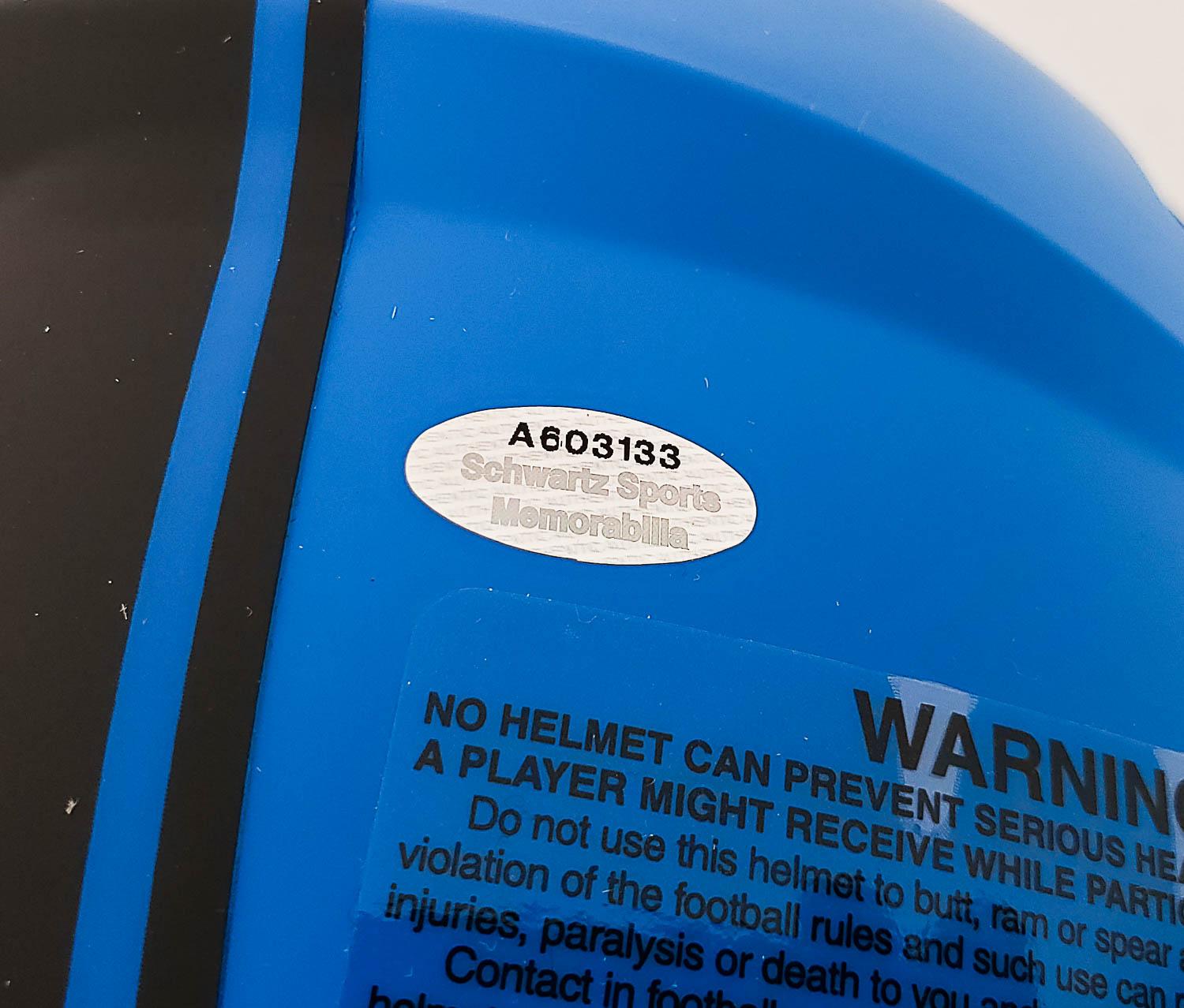 This autographed full size Riddell Authentic Rave Alternate Speed helmet has been personally hand-signed by Barry Sanders of the Detroit Lions. This autograph is certified by Schwartz Sports. It comes with the numbered authentication hologram.