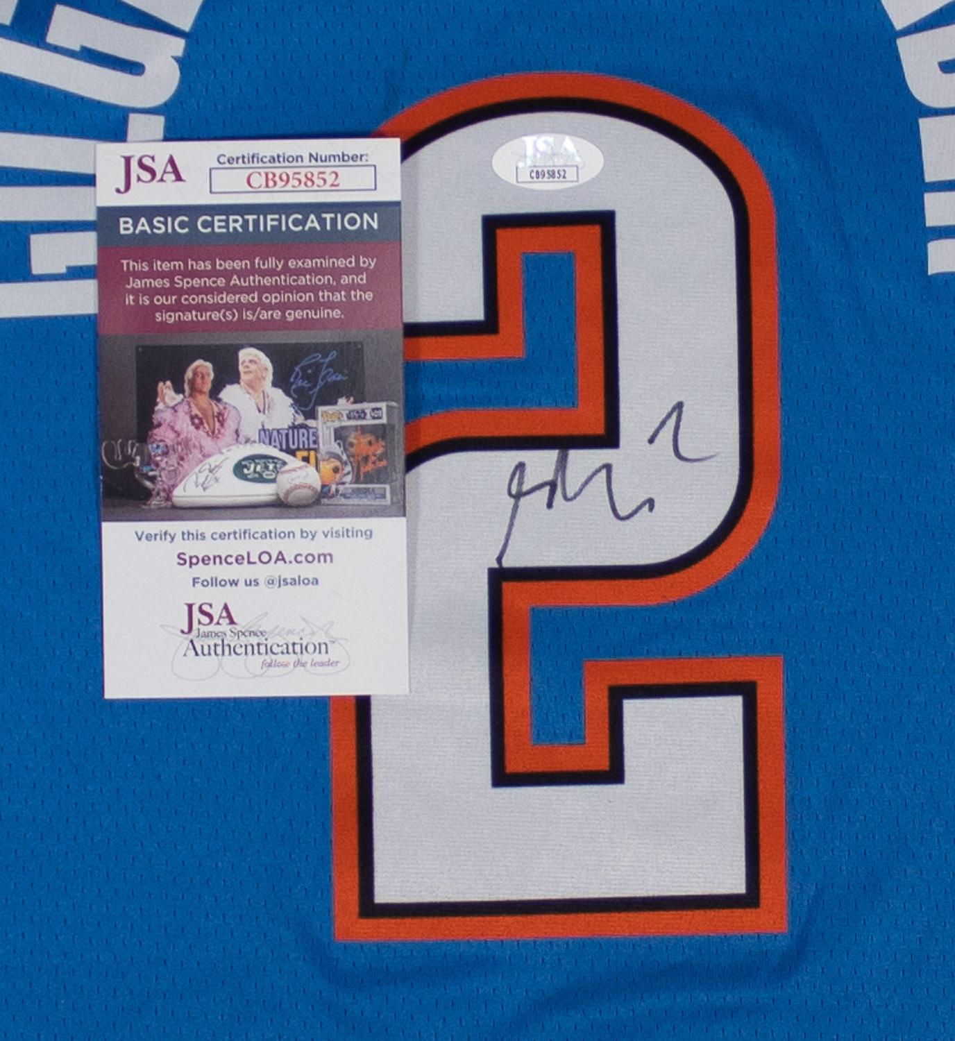 This autographed jersey has been personally hand-signed by Shai Gilgeous Alexander of the Oklahoma City Thunder. This autograph is certified by James Spence Authentication (JSA). It comes with the numbered hologram and matching Certificate of Authenticity.