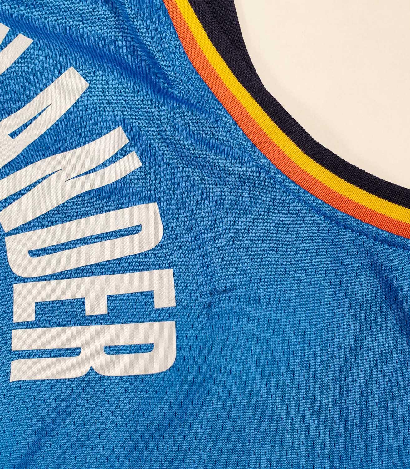 This autographed jersey has been personally hand-signed by Shai Gilgeous Alexander of the Oklahoma City Thunder. This autograph is certified by James Spence Authentication (JSA). It comes with the numbered hologram and matching Certificate of Authenticity. **Please note, there is a small stain above the end of the last name on the back of the jersey.