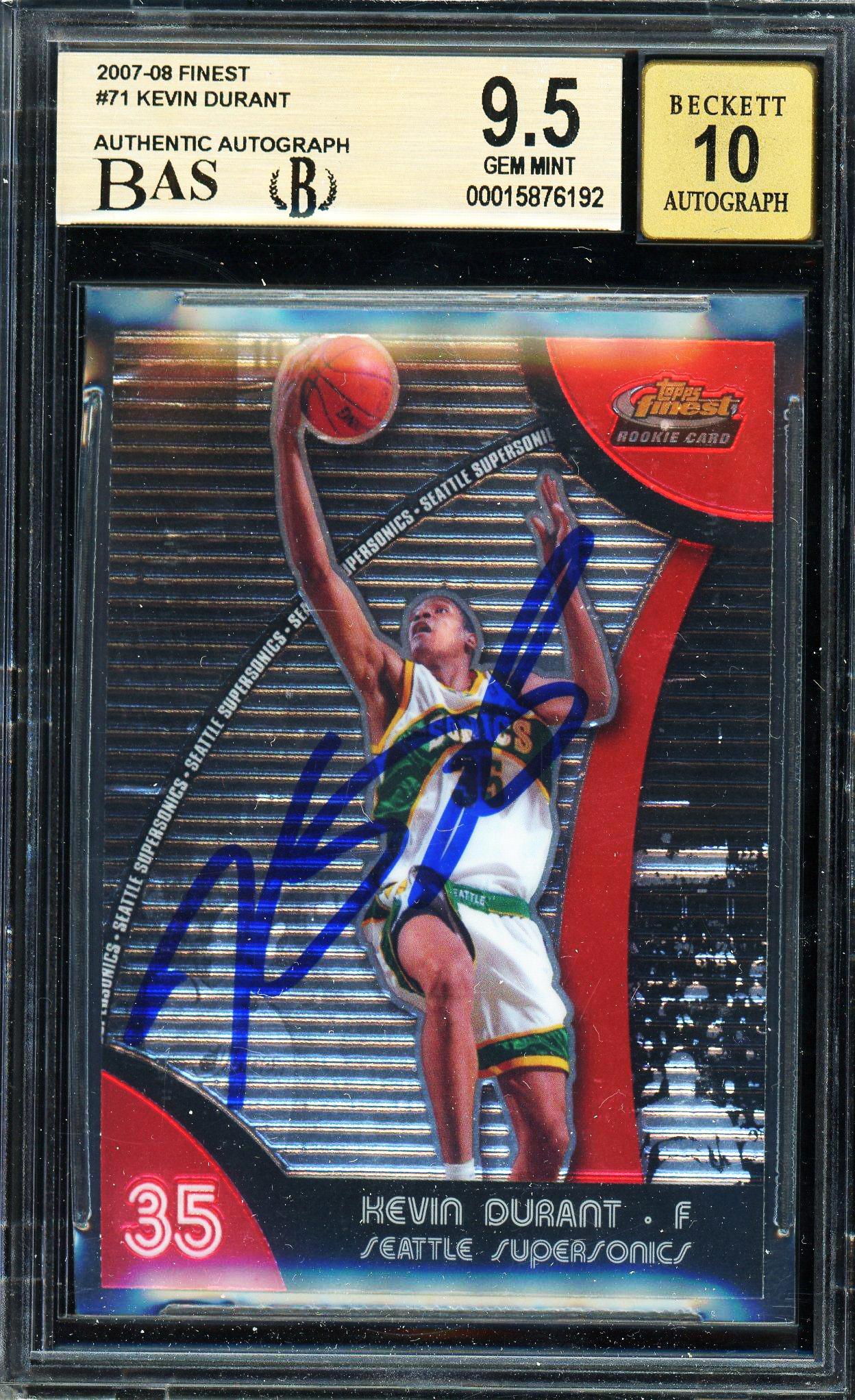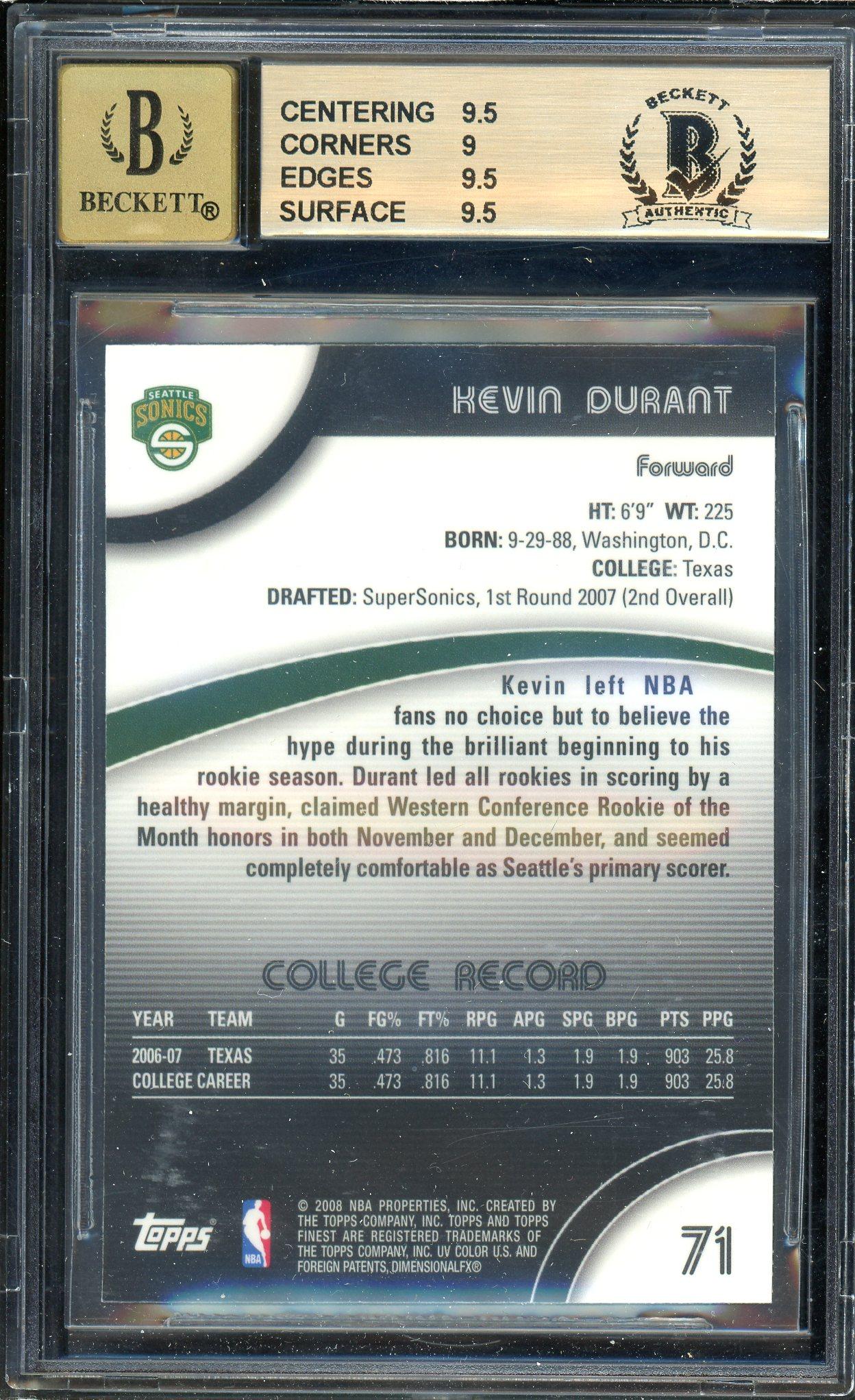 Kevin Durant Signed 2007 Topps Finest Rookie Card #71 BGS 9.5 Auto 10!