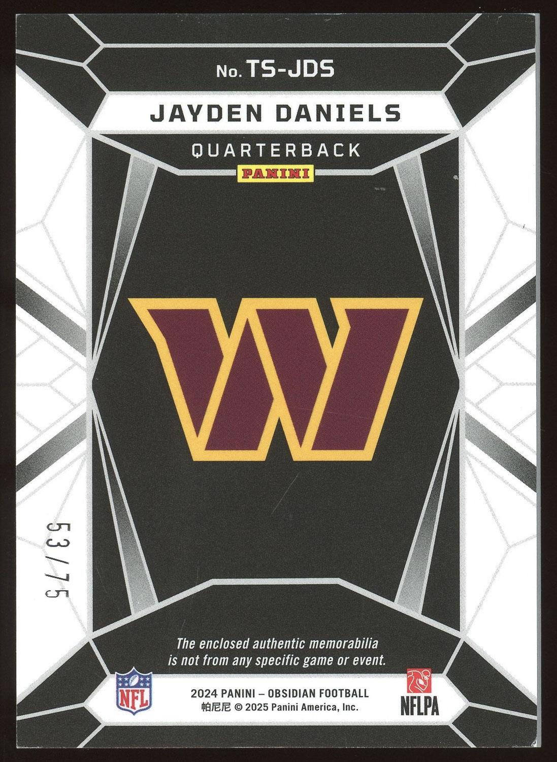 Jayden Daniels 2024 Panini Obsidian Rookie Patch Card 53/75!