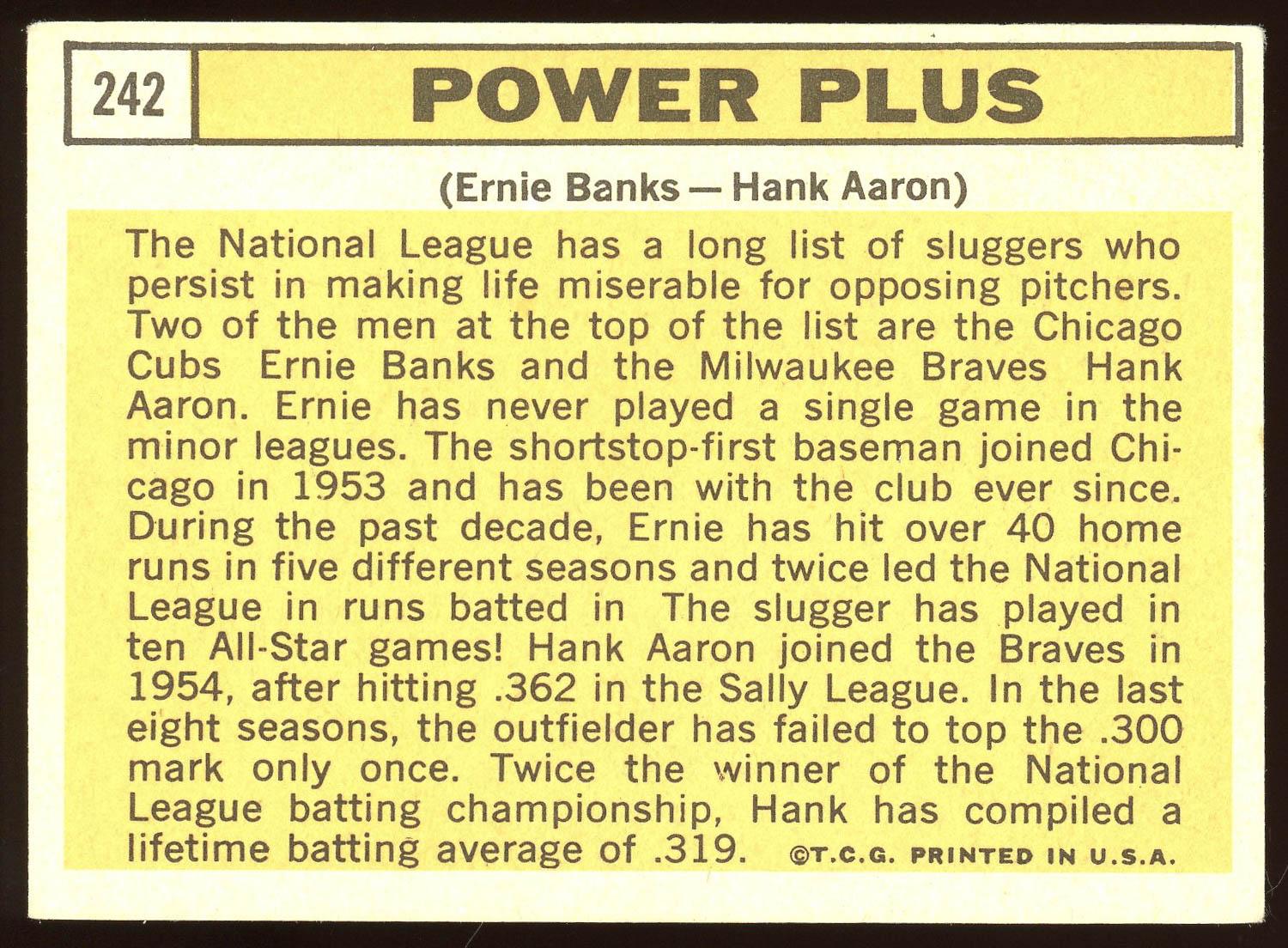 Ernie Banks & Hank Aaron 1963 Topps Power Plus Card #242. Please see pictures for details on the condition of this card.