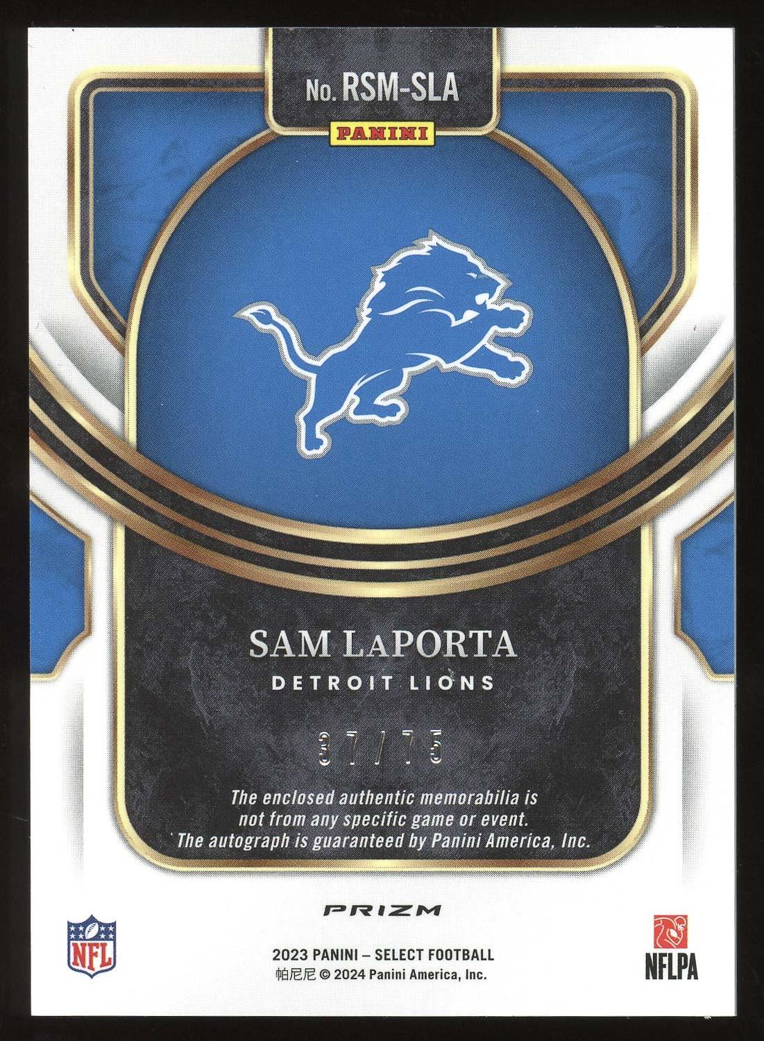 Sam LaPorta 2023 Panini Select Blue Patch Autograph Rookie Card 37/75!