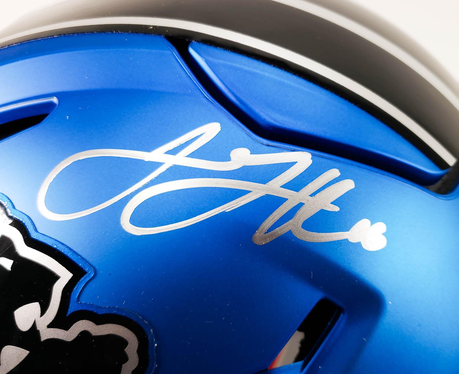 This autographed full size Riddell SpeedFlex authentic speed helmet has been personally hand-signed by Jared Goff of the Detroit Lions. This autograph is certified by Fanatics. It comes with the numbered hologram which can be verified on Fanatics.com.