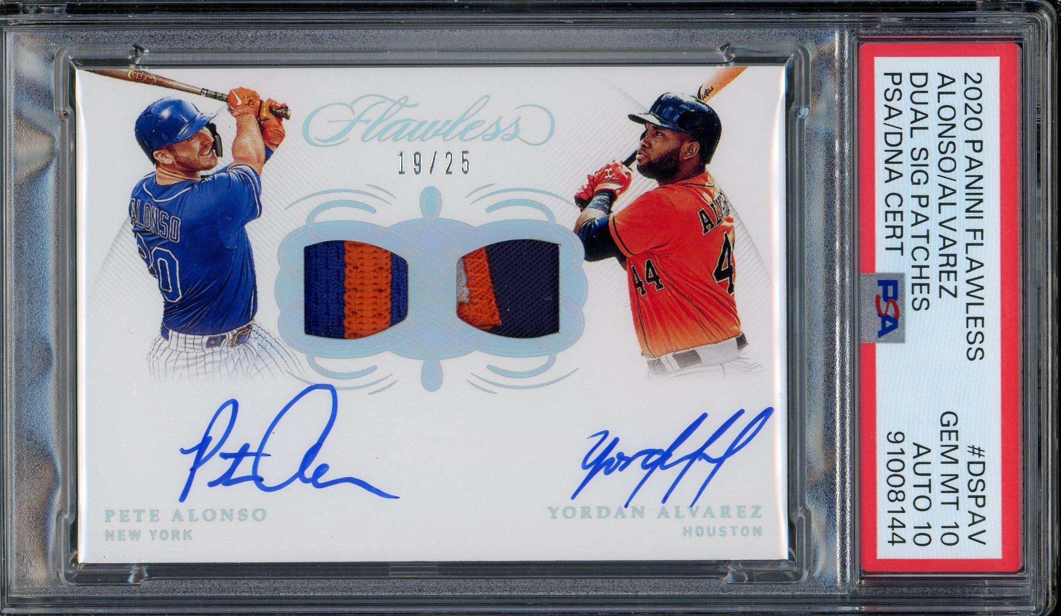 Pete Alonso & Yordan Alvarez 2020 Panini Flawless Dual Signature Patches Autograph Card 19/25! PSA Gem Mint 10 Auto 10 POP 1!