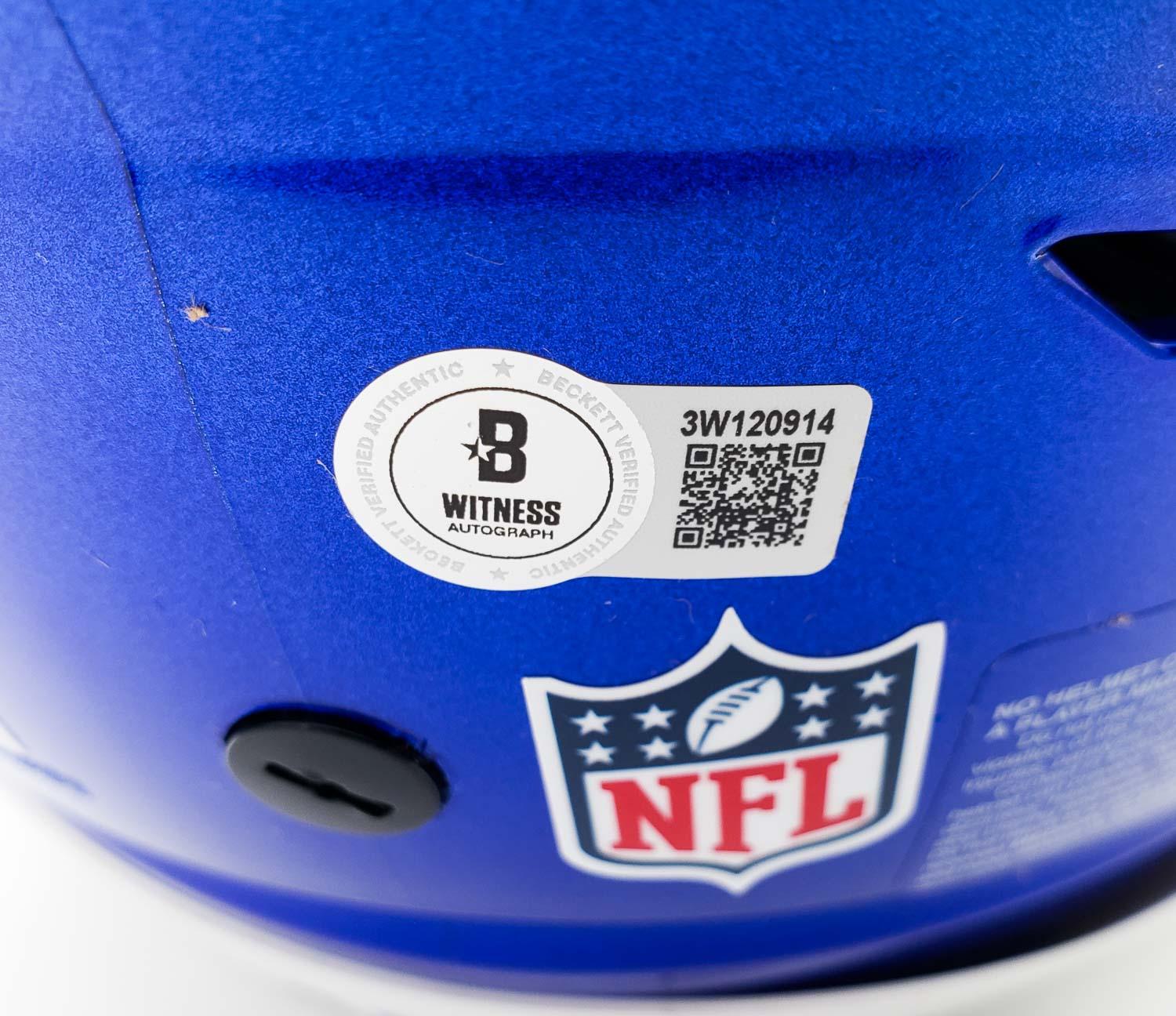 This autographed full size Riddell SpeedFlex authentic speed helmet has been personally hand-signed by Davante Adams of the Los Angeles Rams. This autograph is certified by Beckett Authentication Services (BAS) Witness Certification. That means that a Beckett representative was present when this item was signed. It comes with the numbered authentication hologram with a QR code that verifies the authentication on the Beckett website.