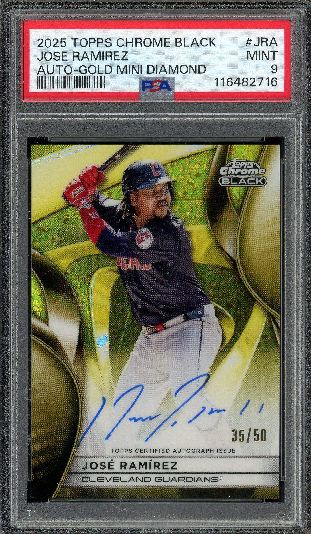 Jose Ramirez 2025 Topps Chrome Black Gold Mini Diamond Autograph Card 35/50! PSA 9 POP 1, None Higher!