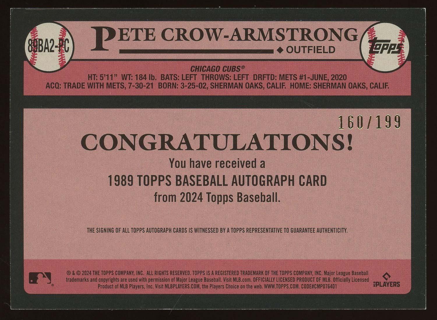 Pete Crow Armstrong 2024 Topps 35th Anniversary Autograph Rookie Card 160/199!