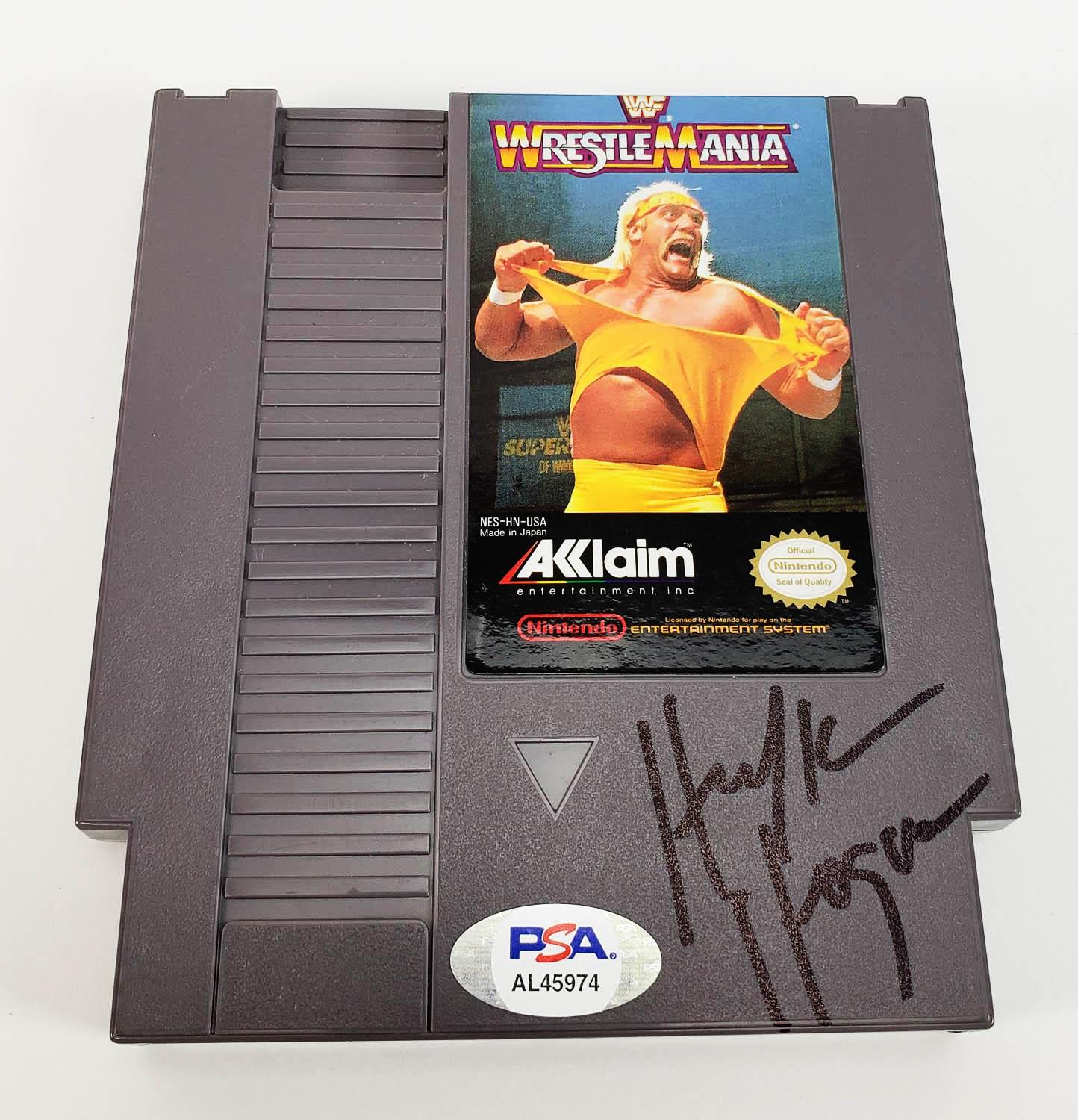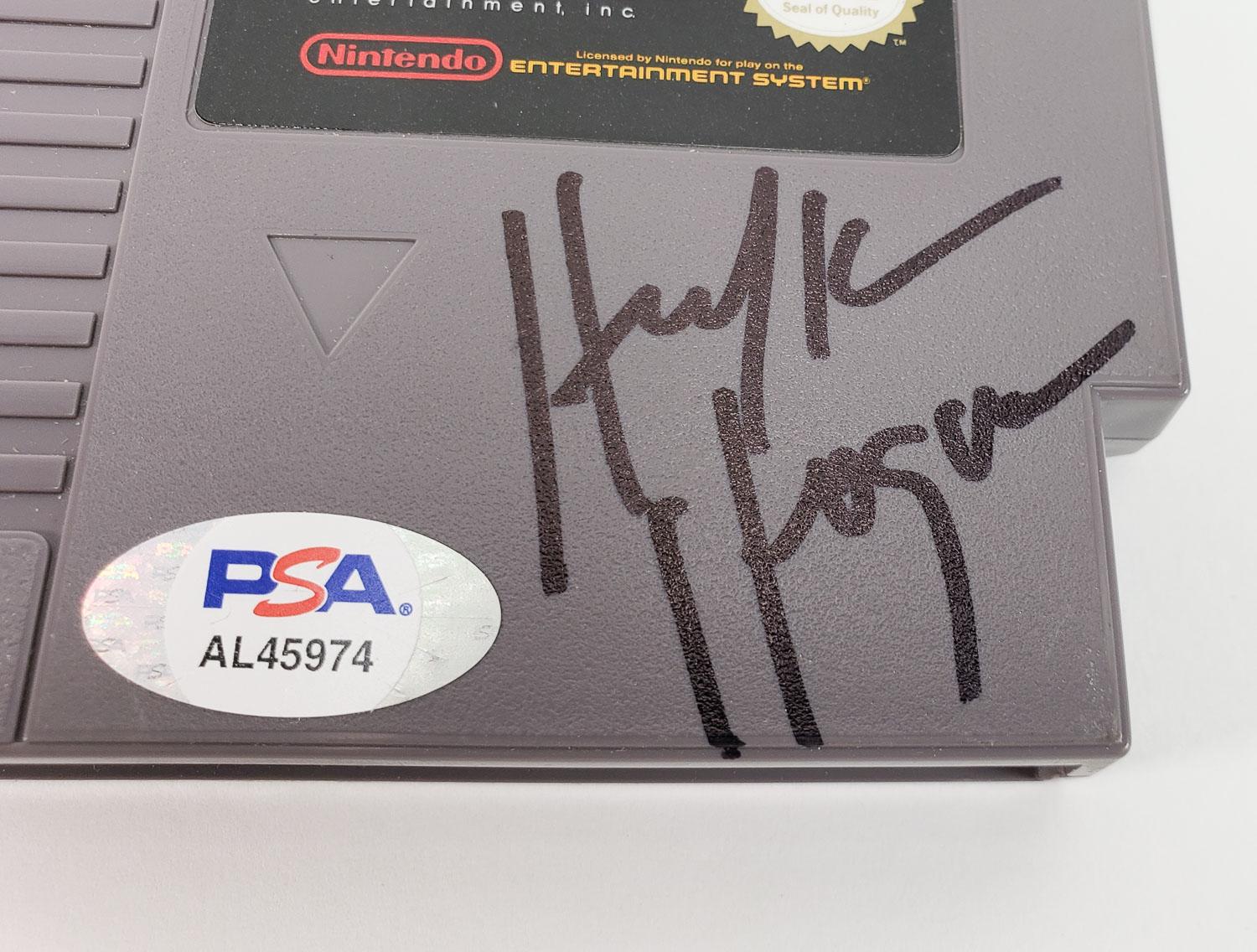 This autographed video game cartridge has been personally hand-signed by Hulk Hogan. This autograph is certified by PSA/DNA (Professional Sports Authenticators). It comes with the numbered authentication hologram which can be verified on the PSA website, psacard.com.