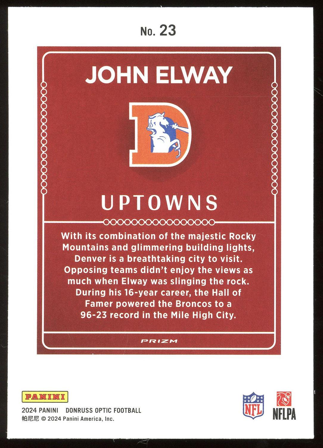 John Elway 2024 Donruss Optic Uptowns Card #23
