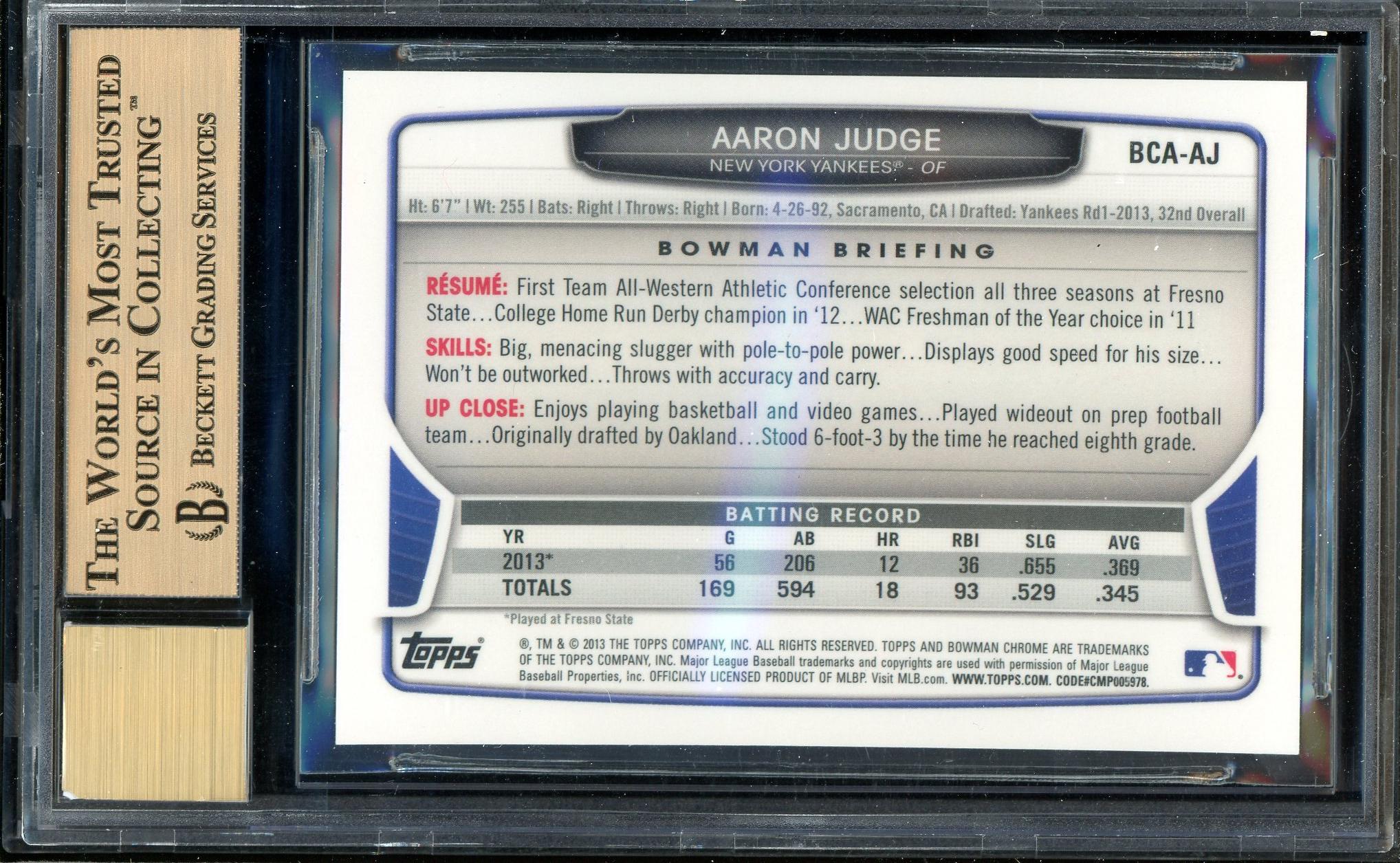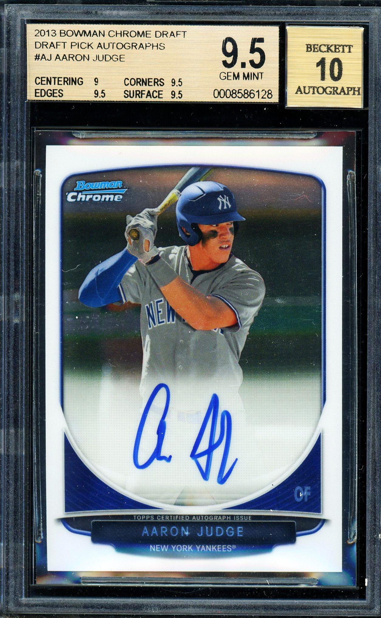 Aaron Judge 2013 Bowman Chrome Draft Pick Autograph Card BGS Gem Mint 9.5 Auto 10!