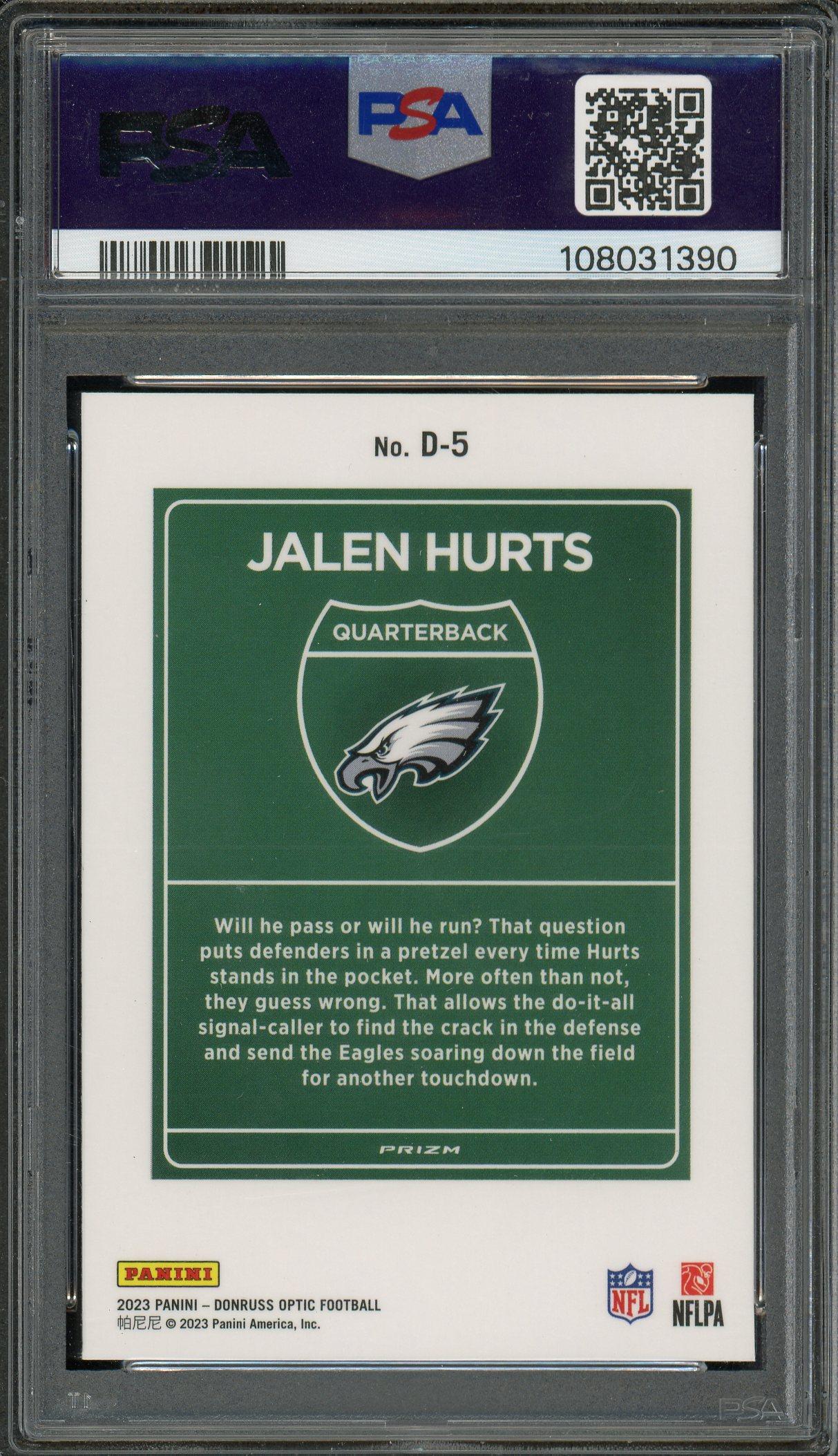 Jalen Hurts 2023 Donruss Optic Downtown! Card PSA 9