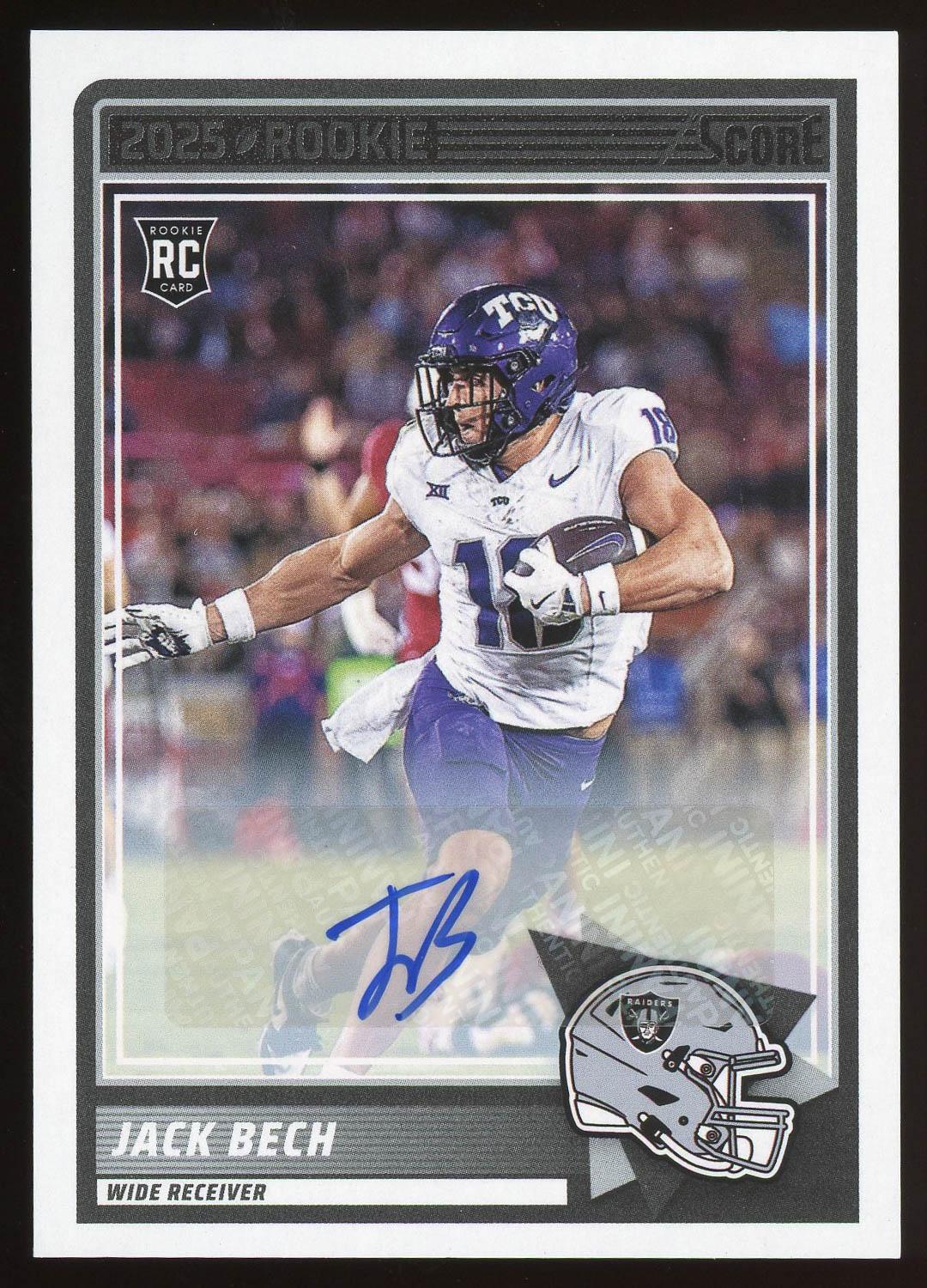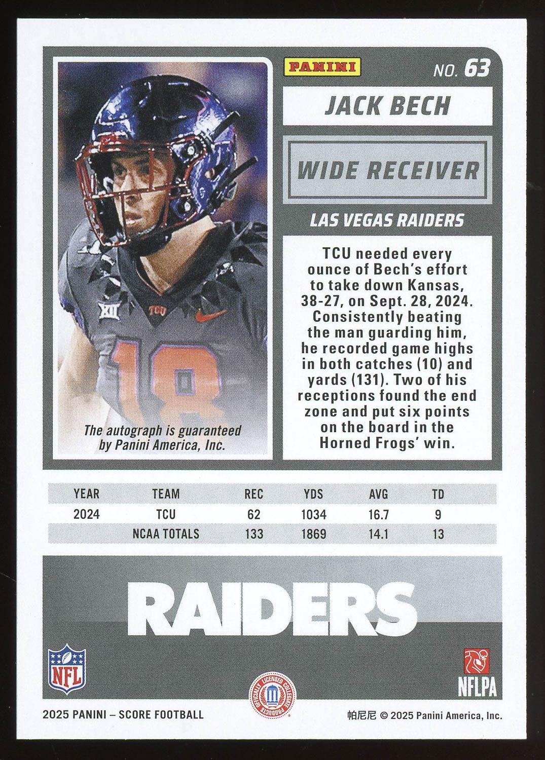 Jack Bech Las Vegas Raiders 2025 Score Autograph Rookie Card #63. Please see pictures for details on the condition of this card.