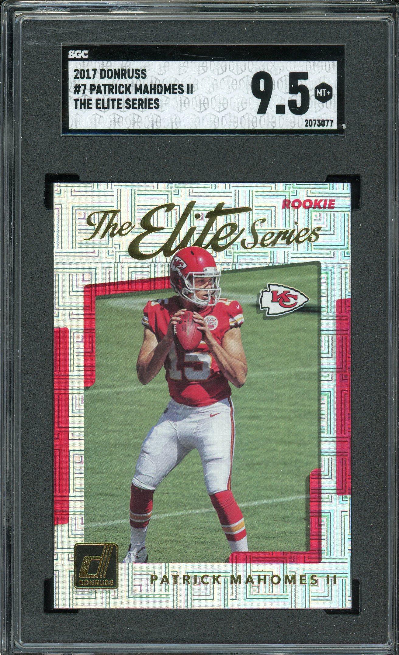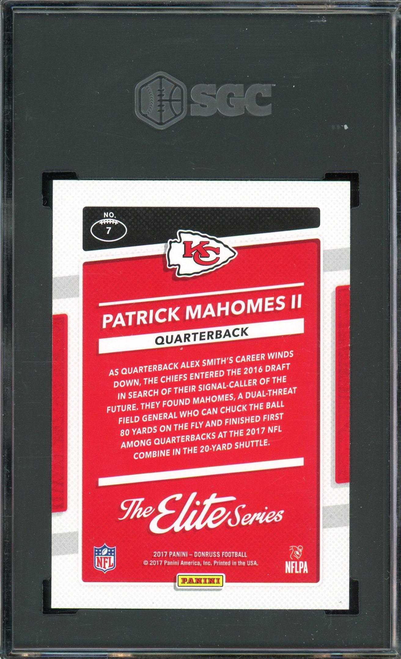 Patrick Mahomes Kansas City Chiefs 2017 Donruss The Elite Series Rookie Card #7. This card has been graded Mint+ 9.5 by SGC.