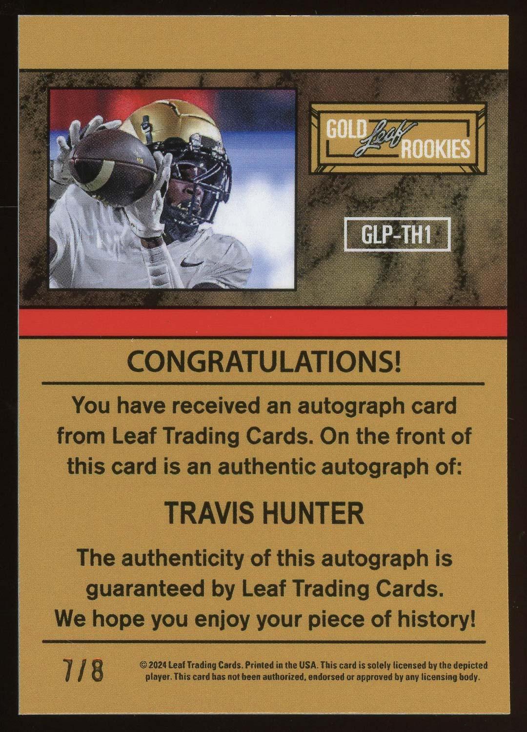 Travis Hunter 2024 Leaf Metal Orange Ice Gold Rookie Autograph Card 7/8!