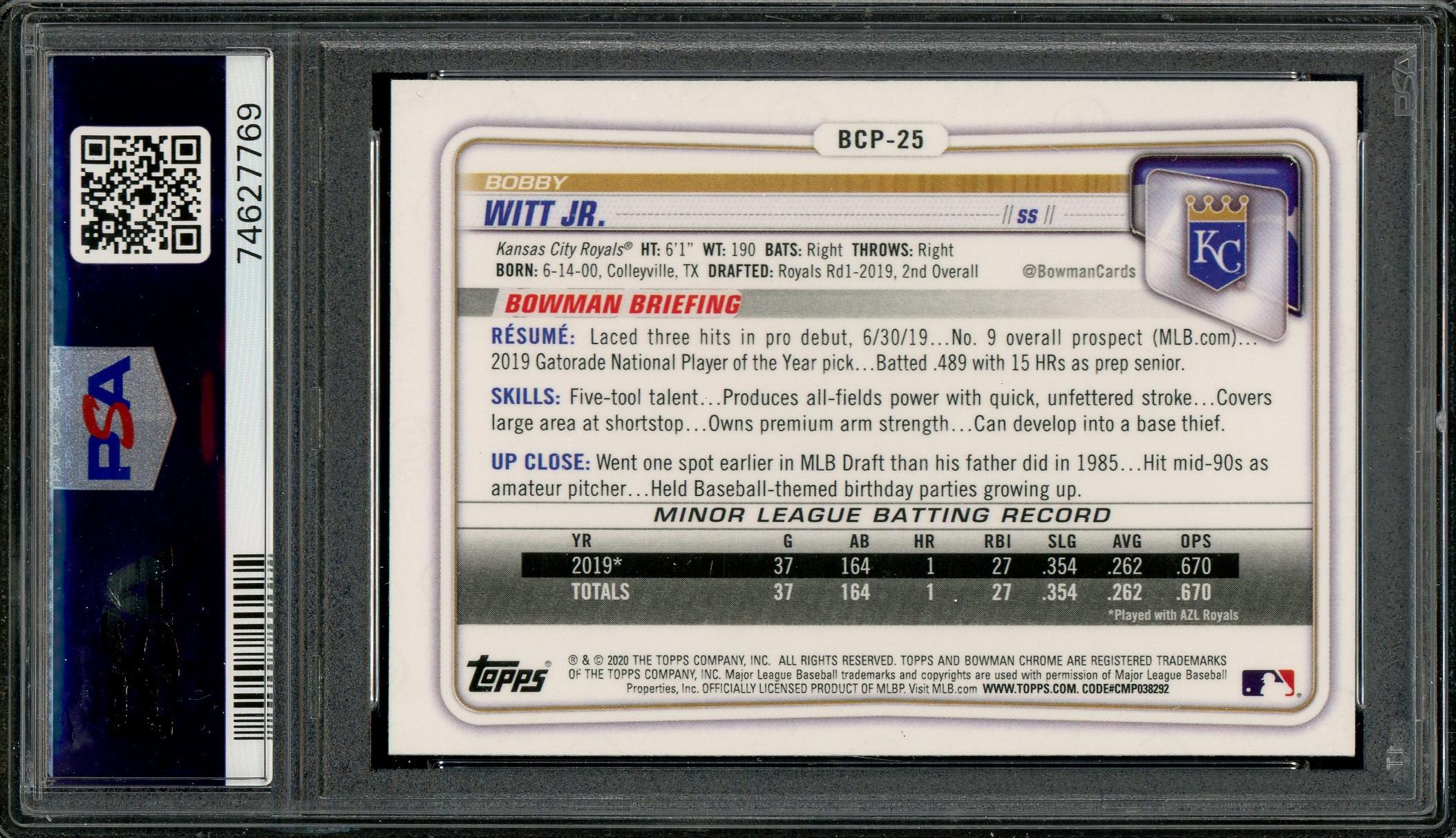 Bobby Witt Jr. Signed 2020 Bowman Chrome Prospects 1st Bowman Card PSA/DNA