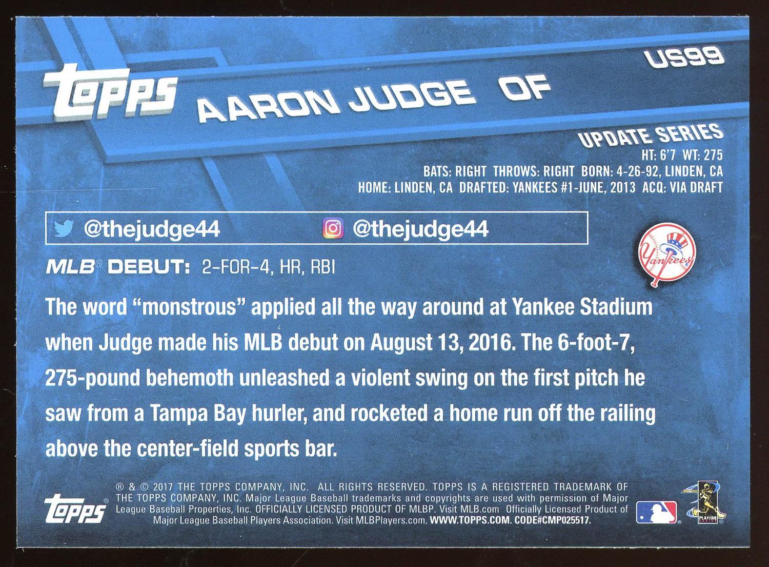 Aaron Judge 2017 Topps Update Rookie Card