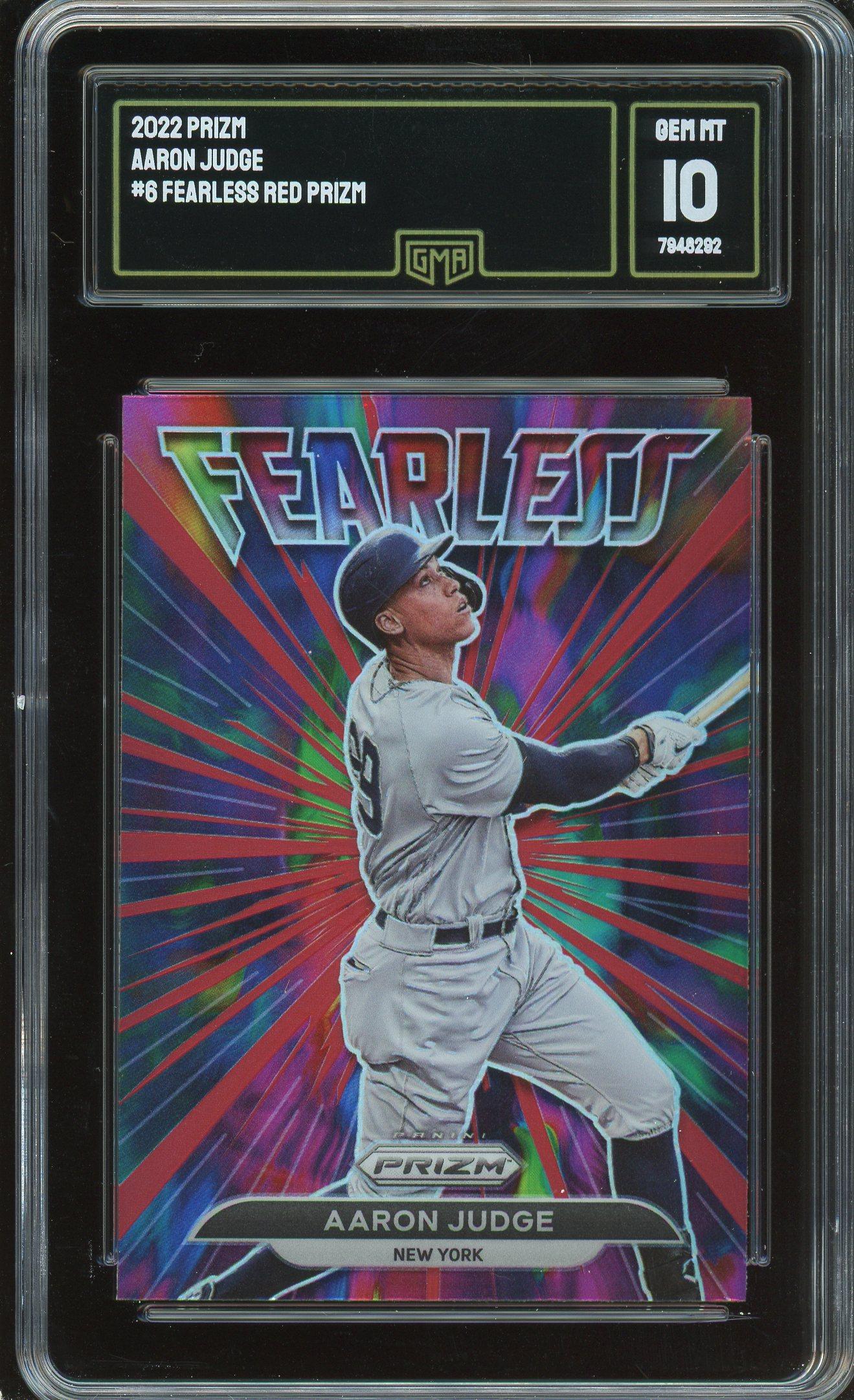 Aaron Judge New York Yankees 2022 Panini Prizm Fearless Red Prizm Card #6. This card has been encapsulated. Please see pictures for details on the condition of this card.