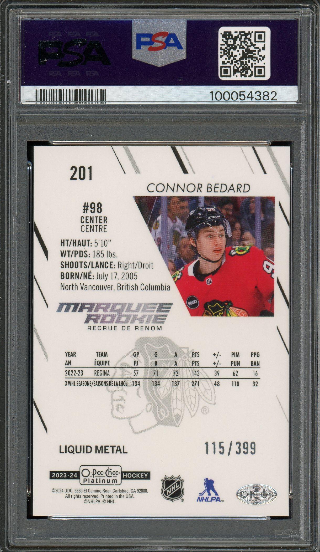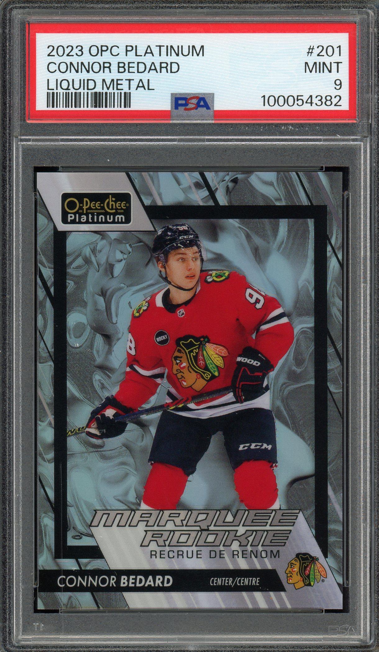 Connor Bedard 2023 O Pee Chee Platinum Liquid Metal Card 115/399! PSA 9: POP 8, 45 Higher!