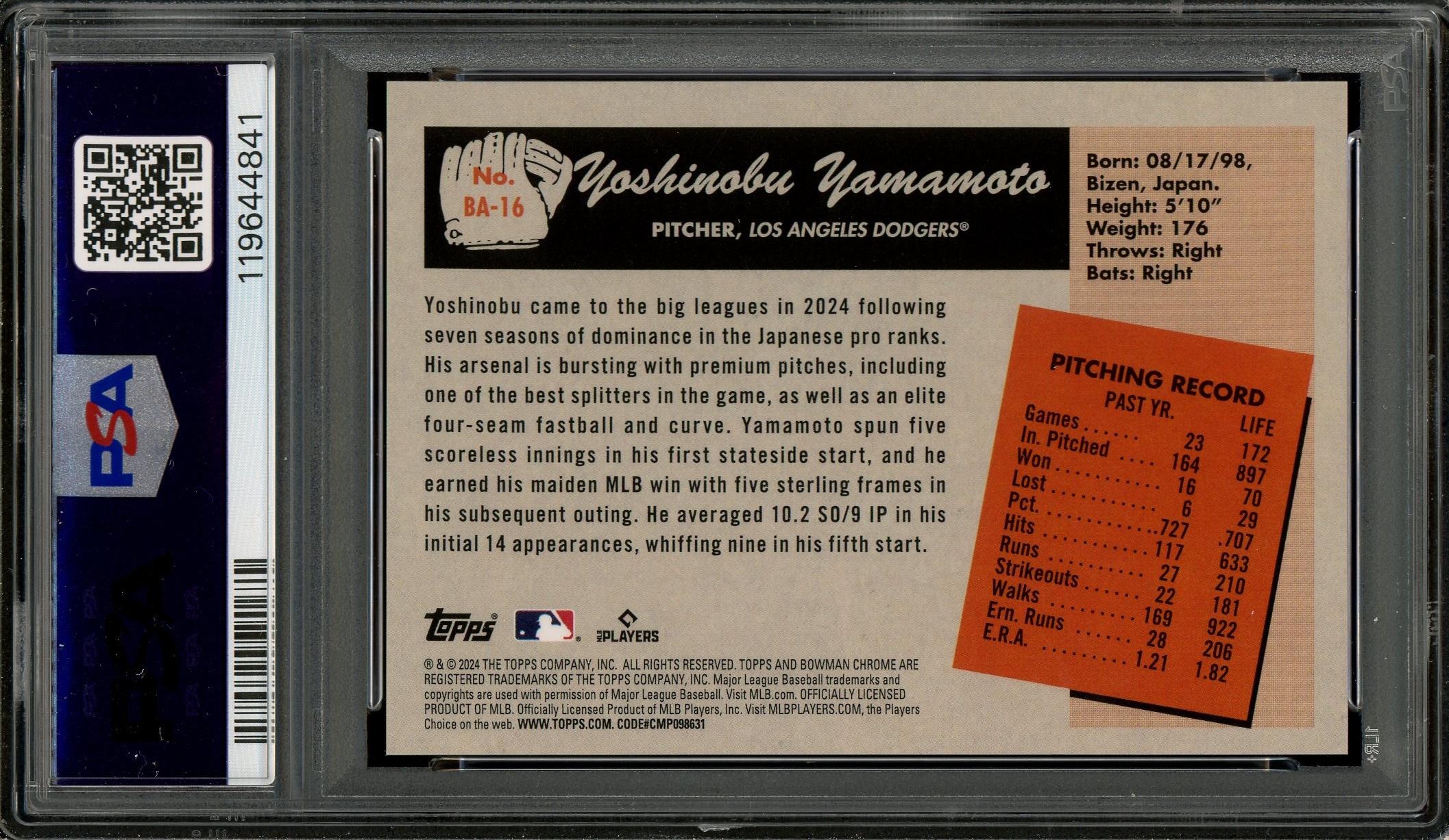Yoshinobu Yamamoto 2024 Bowman's Best 1955 Bowman Anime Rookie Card PSA Gem Mint 10!