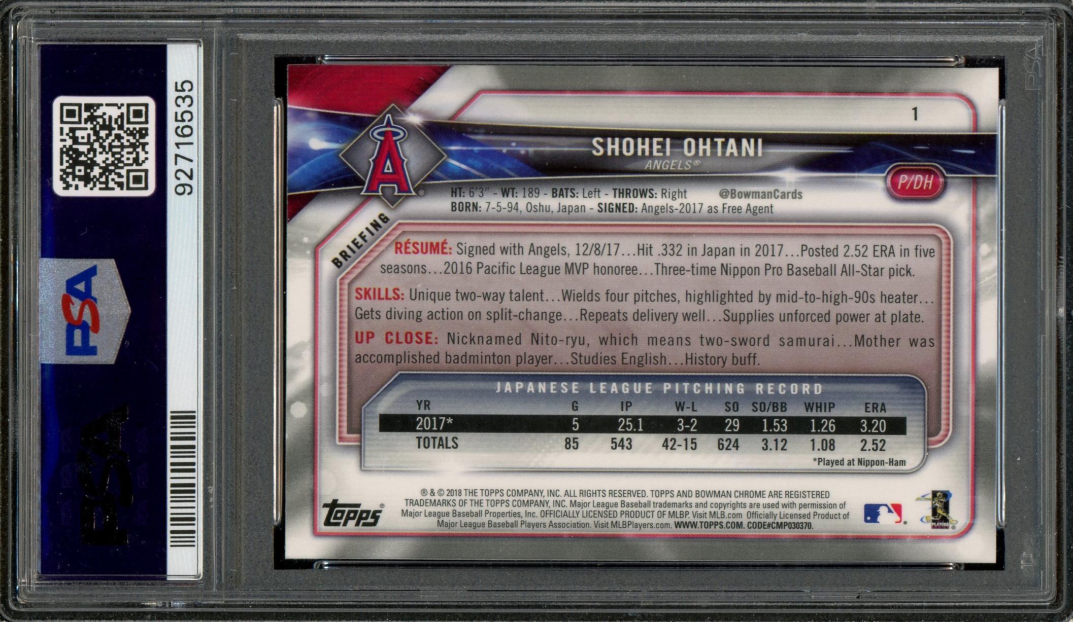 Shohei Ohtani 2018 Bowman Chrome Batting Rookie Card #1 PSA 9