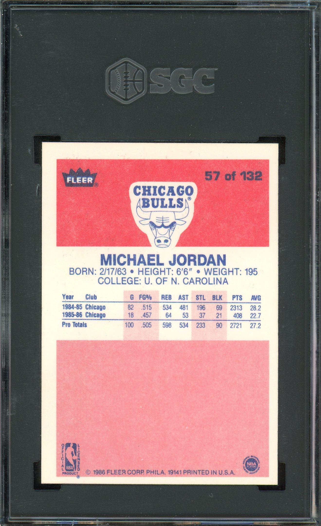 Michael Jordan Chicago Bulls 1986 Fleer Rookie Card #57. This card has been graded EX MT 6 by SGC.