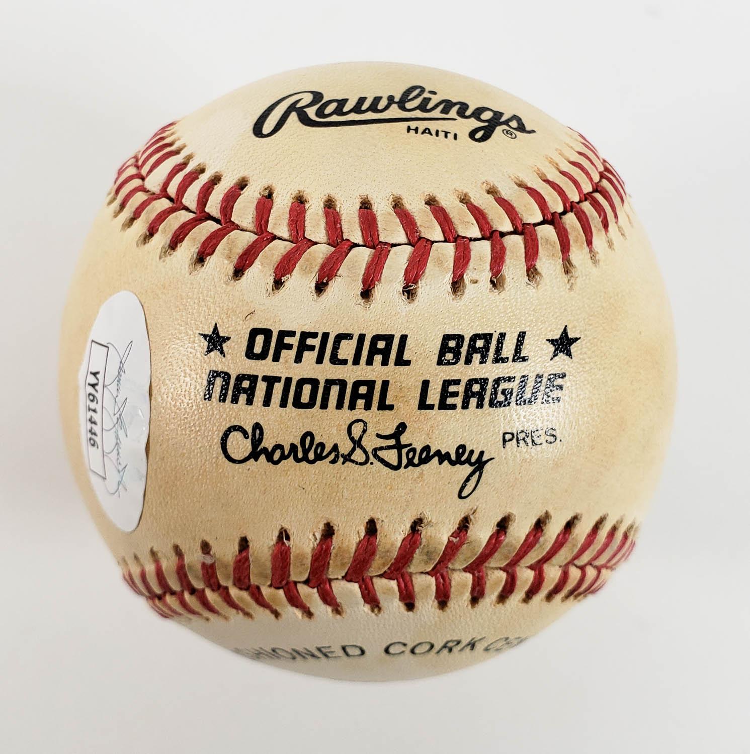 This autographed baseball has been personally hand-signed by Willie Mays & Willie McCovey of the San Francisco Giants. This autograph is certified by James Spence Authentication (JSA). It comes with the numbered hologram and matching Letter of Authenticity.