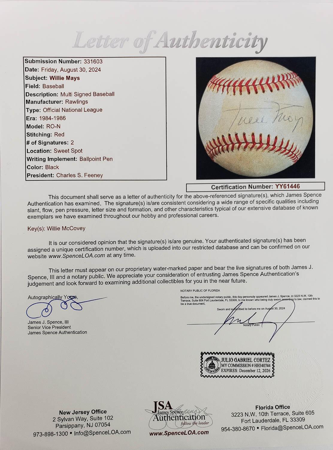 Willie Mays & Willie McCovey Signed ONL Feeney Baseball (JSA LOA)