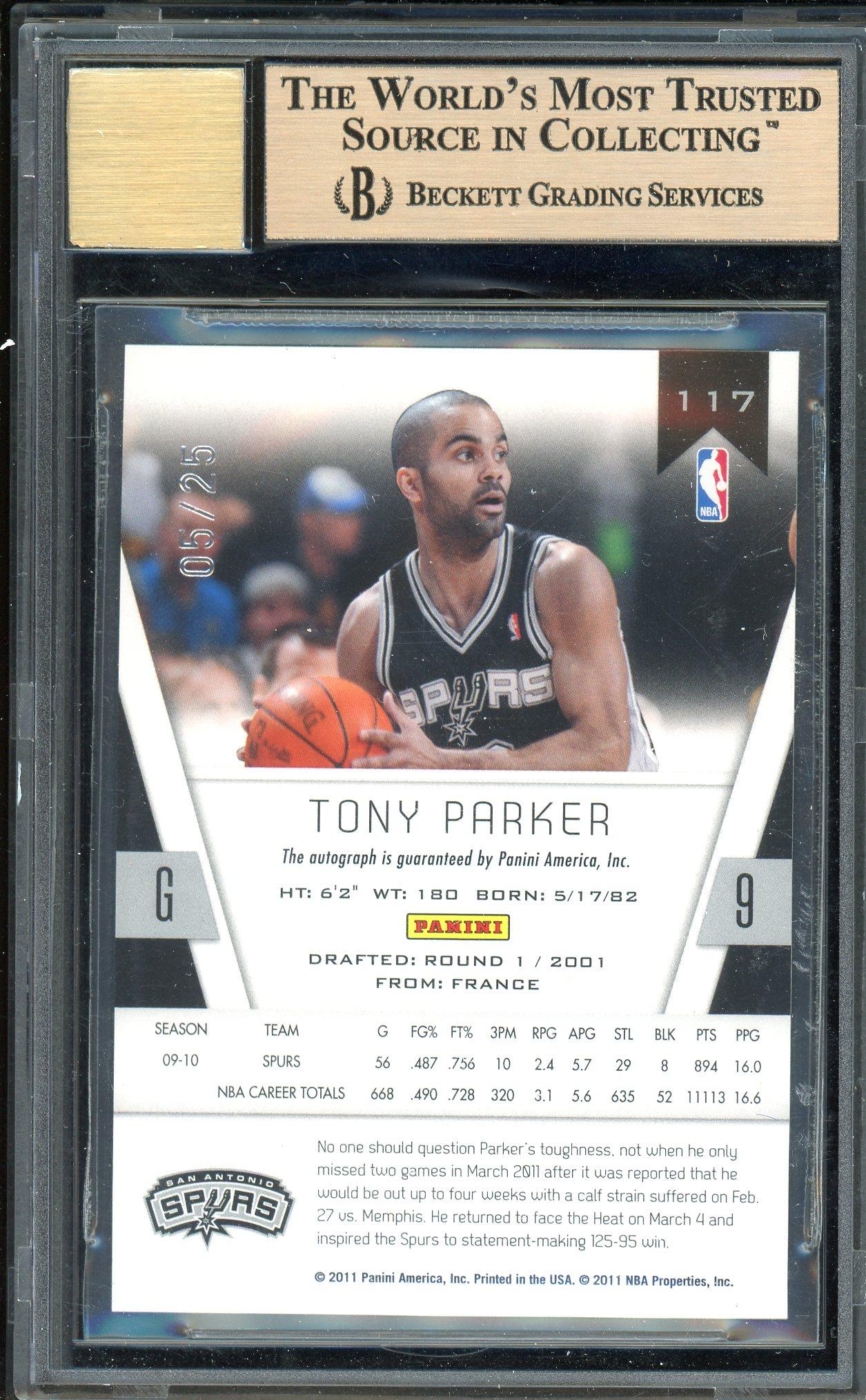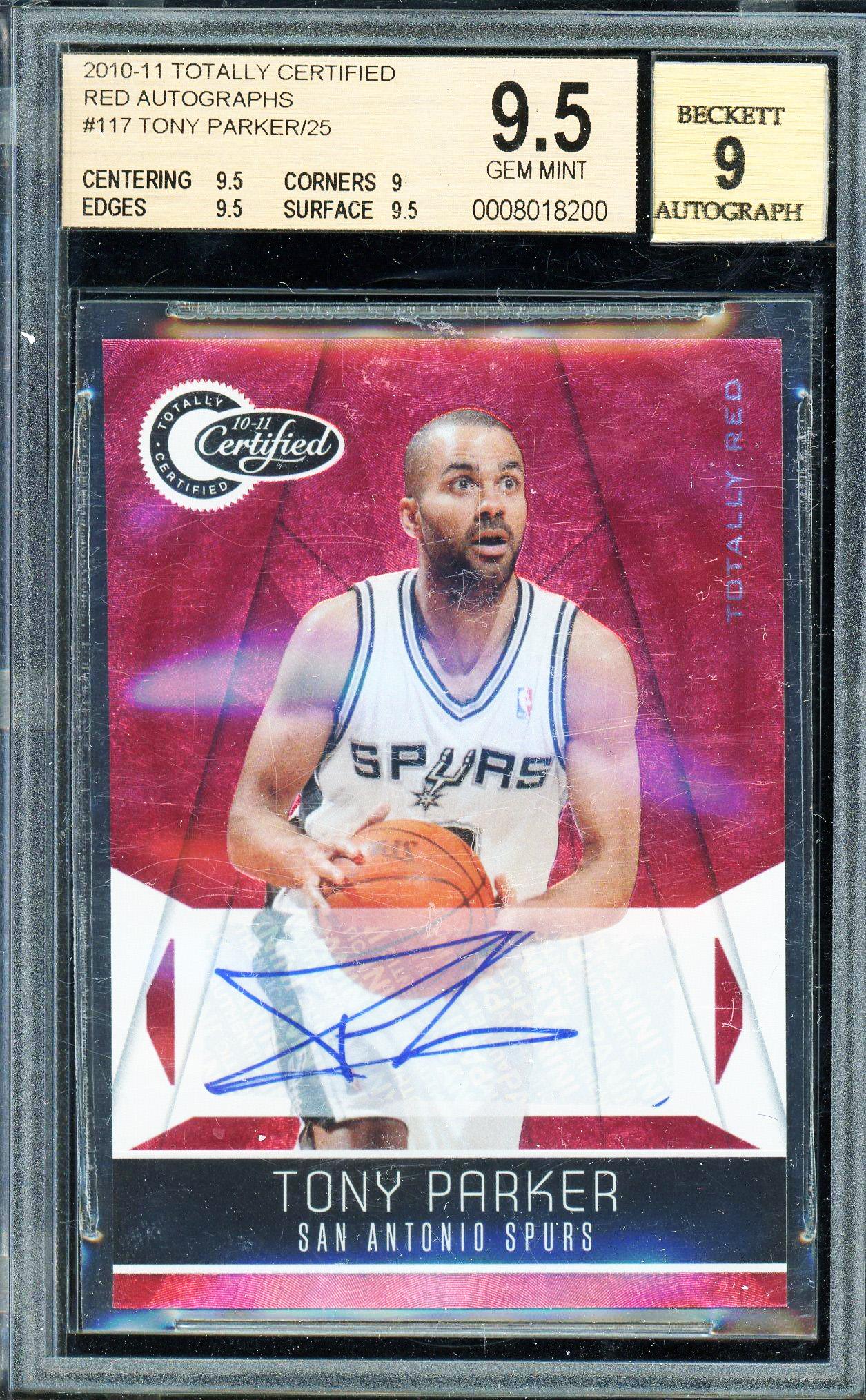 Tony Parker 2010 Panini Totally Certified Red Autograph Card 5/25! BGS Gem Mint 9.5 Auto 9 POP 2!