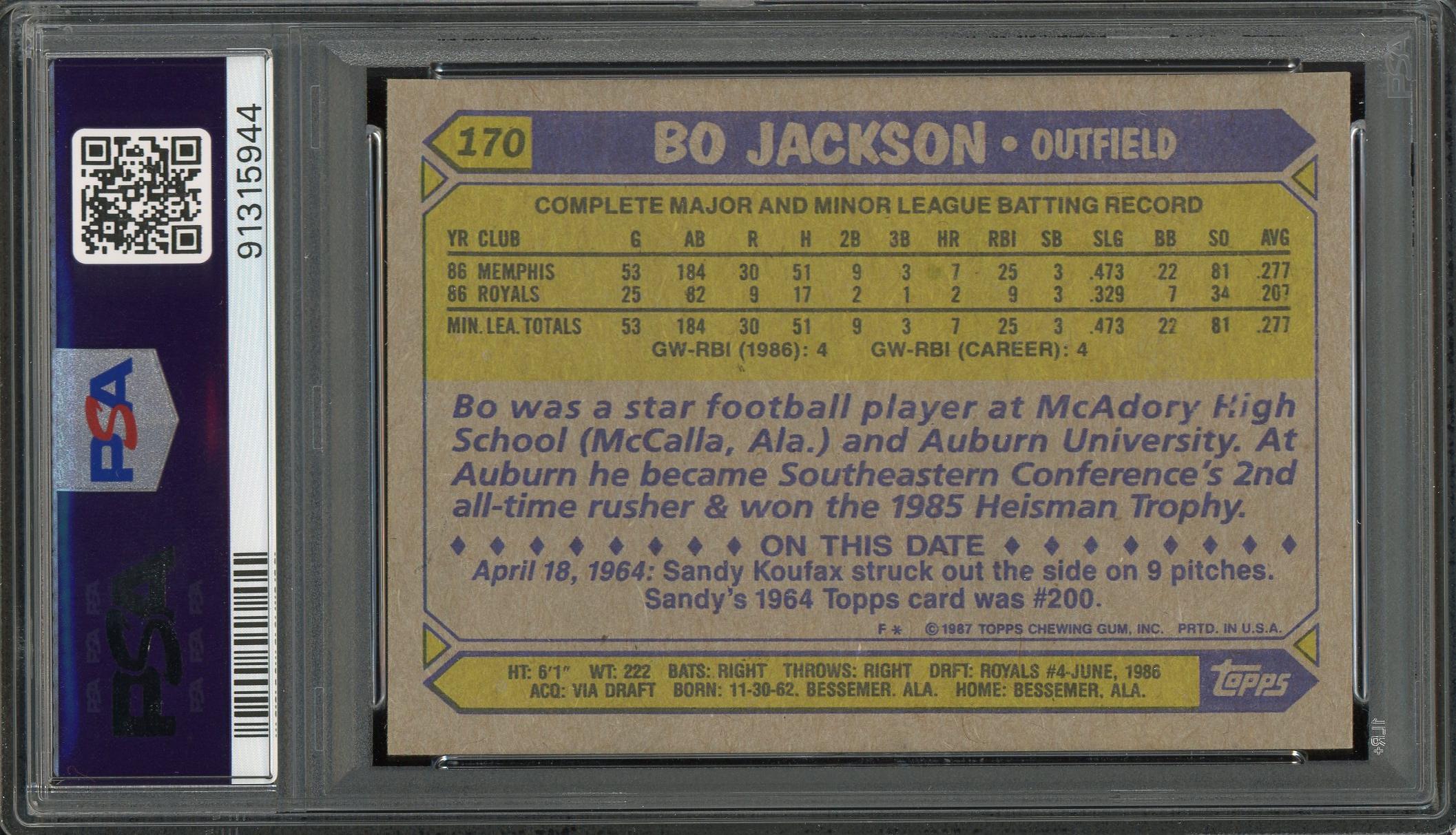Bo Jackson 1987 Topps Future Stars Rookie Card #170 PSA Gem Mint 10!
