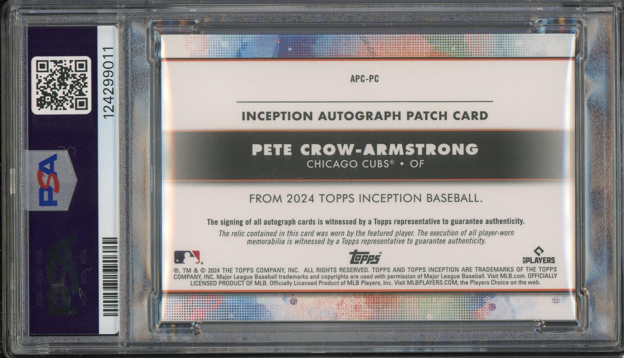 Pete Crow Armstrong 2024 Topps Inception Rookie 3 Color Patch Autograph Card 27/200! PSA 9