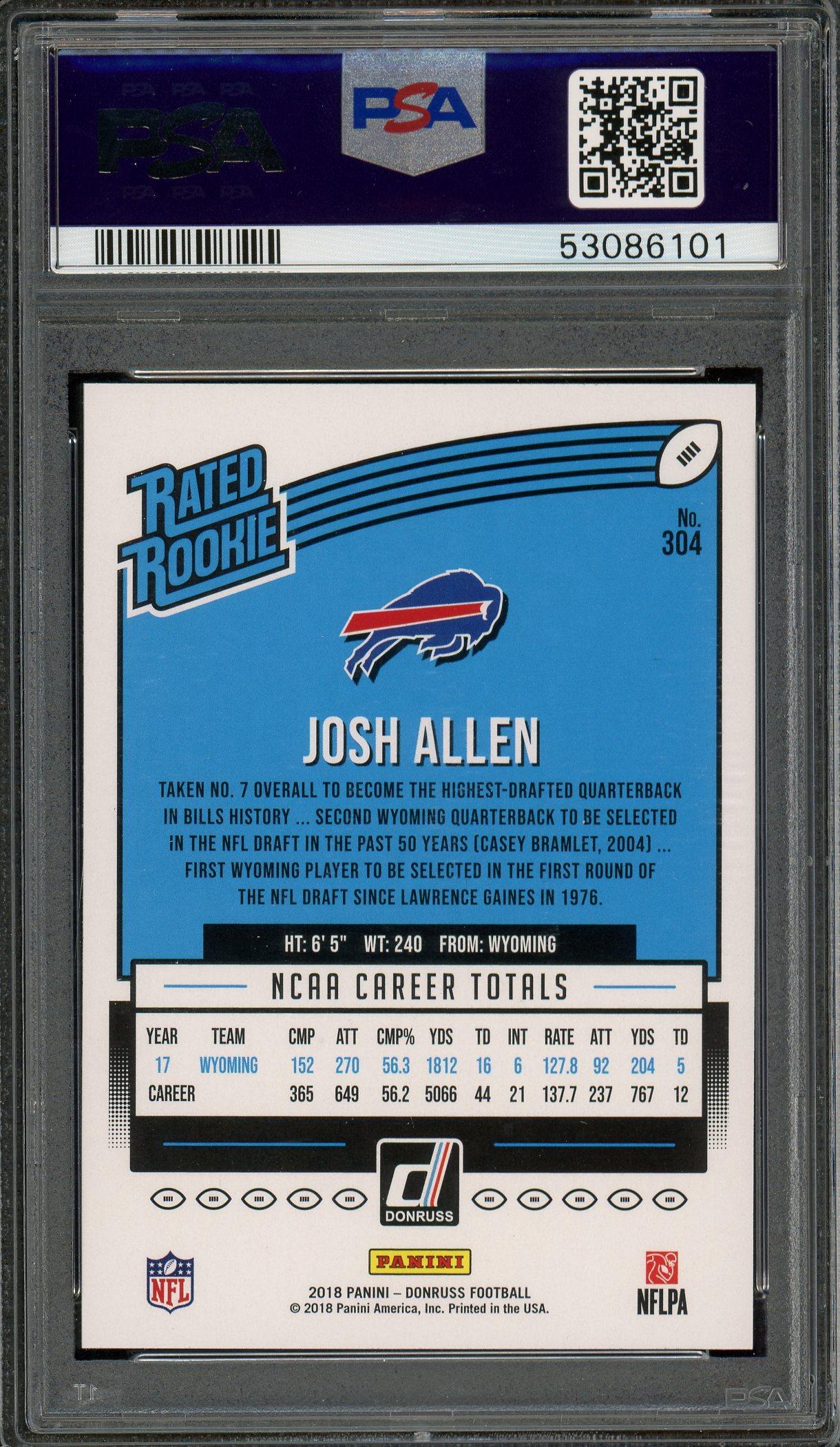Josh Allen 2018 Panini Donruss Rated Rookie Card #304 PSA Gem Mint 10!