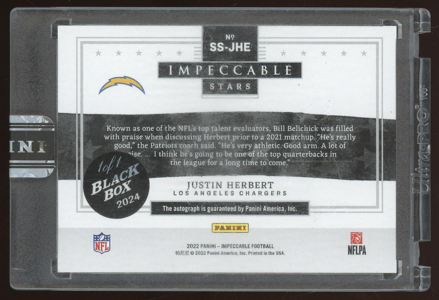 Justin Herbert Los Angeles Chargers 2022 Panini Impeccable Stars Black Box Autograph Card 1/1! Please see pictures for details on the condition of this card.