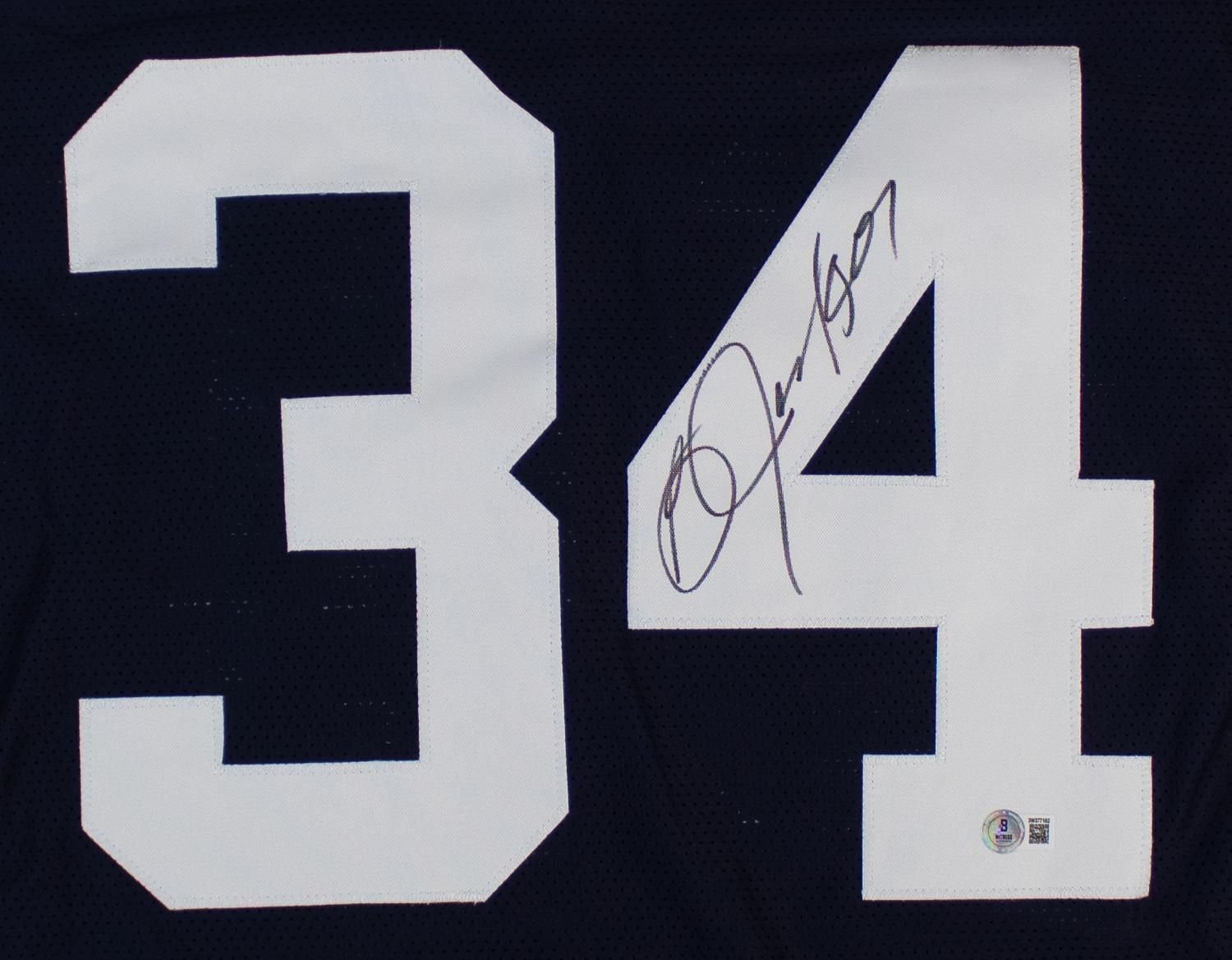This autographed jersey has been personally hand-signed by Bo Jackson of the Auburn Tigers. This autograph is certified by Beckett Authentication Services (BAS) Witness Certification. That means that a Beckett representative was present when this item was signed. It comes with the numbered authentication hologram with a QR code that verifies the authentication on the Beckett website.