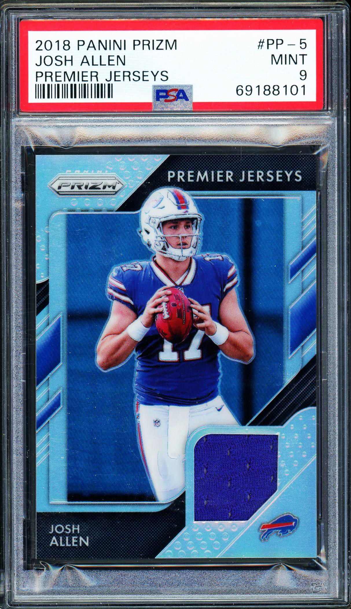 Josh Allen 2018 Panini Prizm Premier Jersey Rookie Game Used Patch Card PSA 9