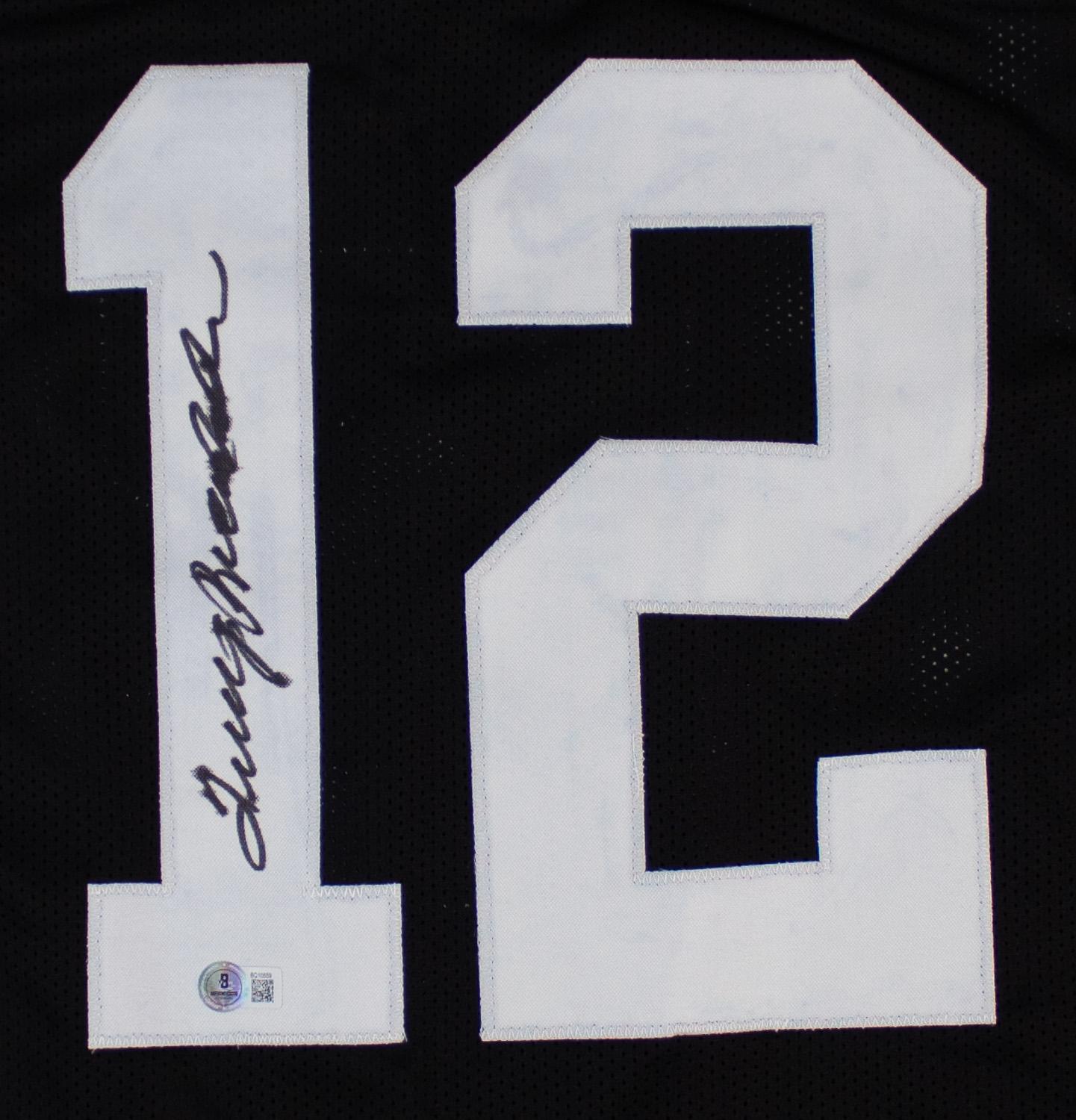 This autographed jersey has been personally hand-signed by Terry Bradshaw of the Pittsburgh Steelers. This autograph is certified by Beckett Authentication Services (BAS) Certification. It comes with the numbered authentication hologram with a QR code that verifies the authentication on the Beckett website.