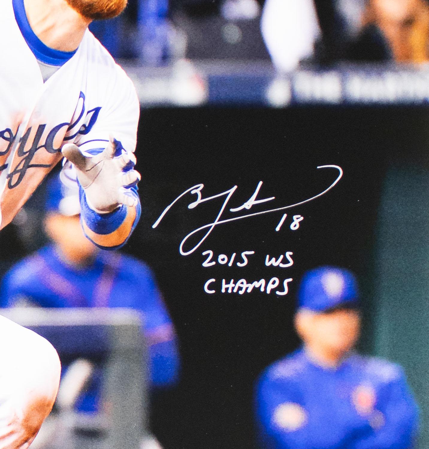 This autographed 16x20 photo has been personally hand-signed by Ben Zobrist("2015 WS Champs" inscription) of the Kansas City Royals. This autograph is certified by Beckett Authentication Services (BAS) Certification. It comes with the numbered authentication hologram with a QR code that verifies the authentication on the Beckett website.