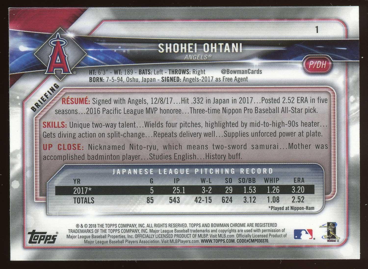 Shohei Ohtani 2018 Bowman Chrome Rookie Card #1