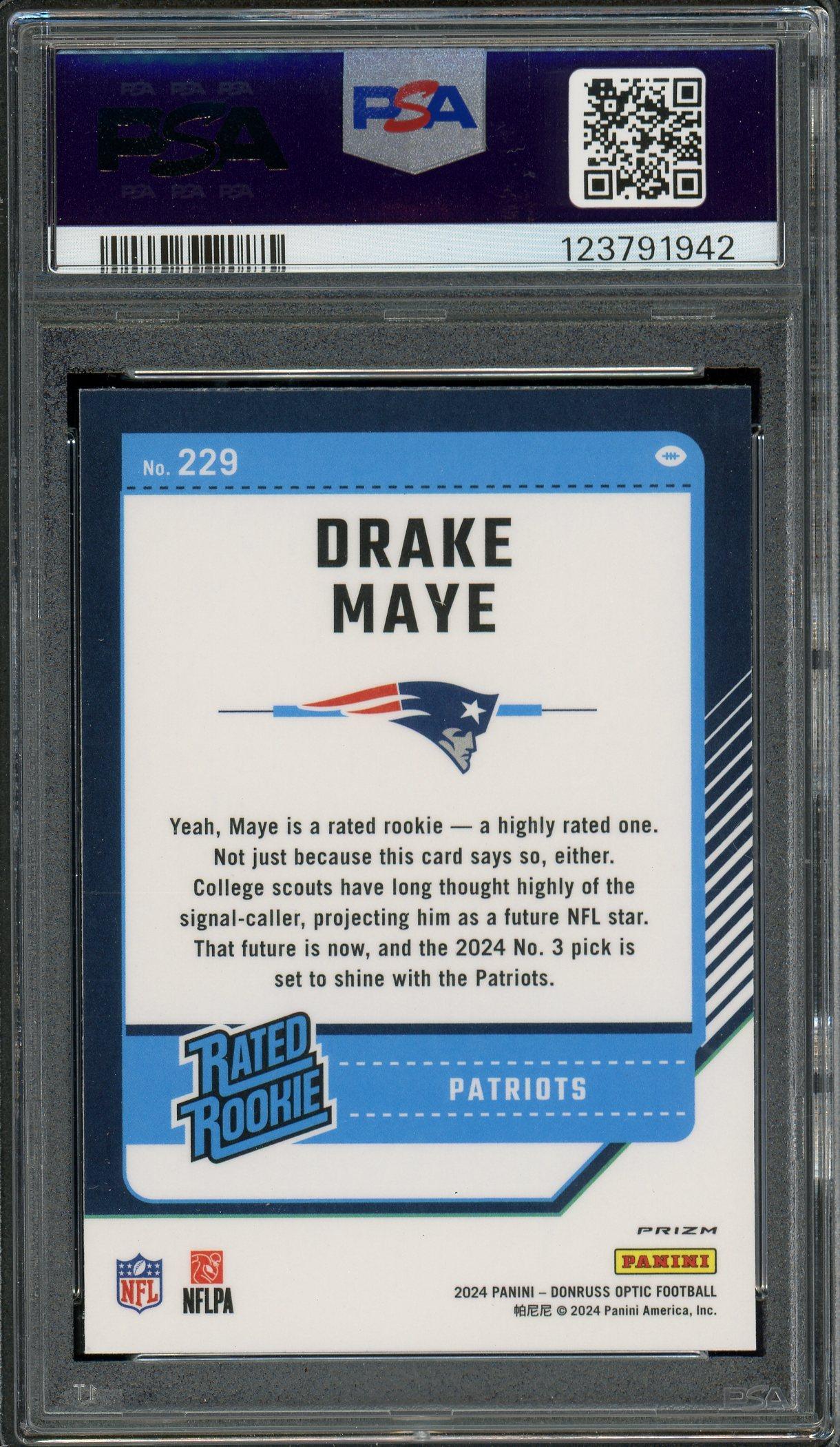 Drake Maye 2024 Donruss Optic Purple Shock Rated Rookie Card #229 PSA 9