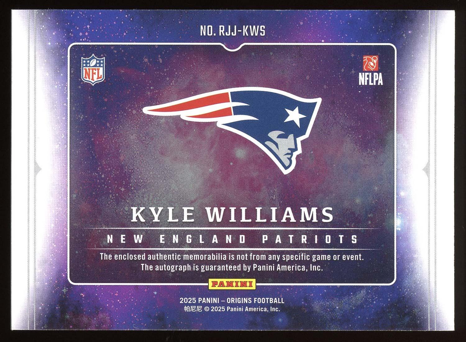 Kyle Williams New England Patriots 2025 Panini Origins Rookie Patch Autograph Card 6/49! Please see pictures for details on the condition of this card.