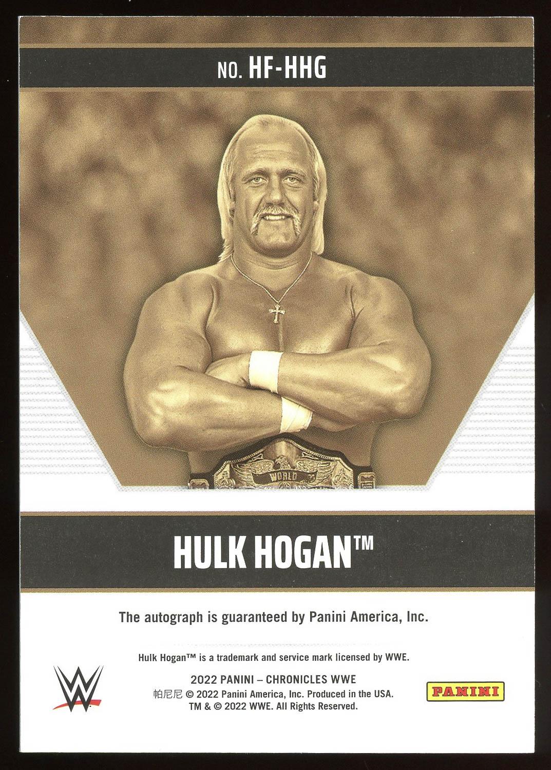 Hulk Hogan 2022 Panini Chronicles Hall of Fame Autograph Card. Please see pictures for details on the condition of this card.