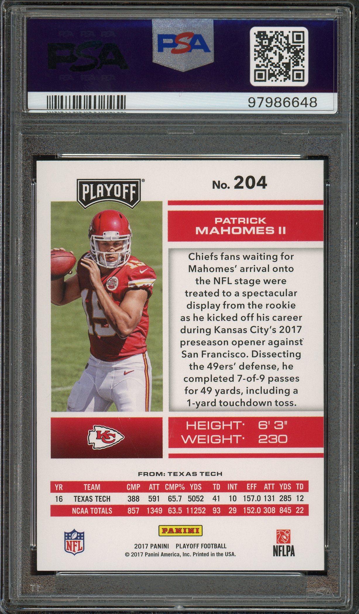 Patrick Mahomes Signed 2017 Panini Playoff Goal Line Rookie Card Card #204 PSA 9 Auto 10 POP 1, None Higher!