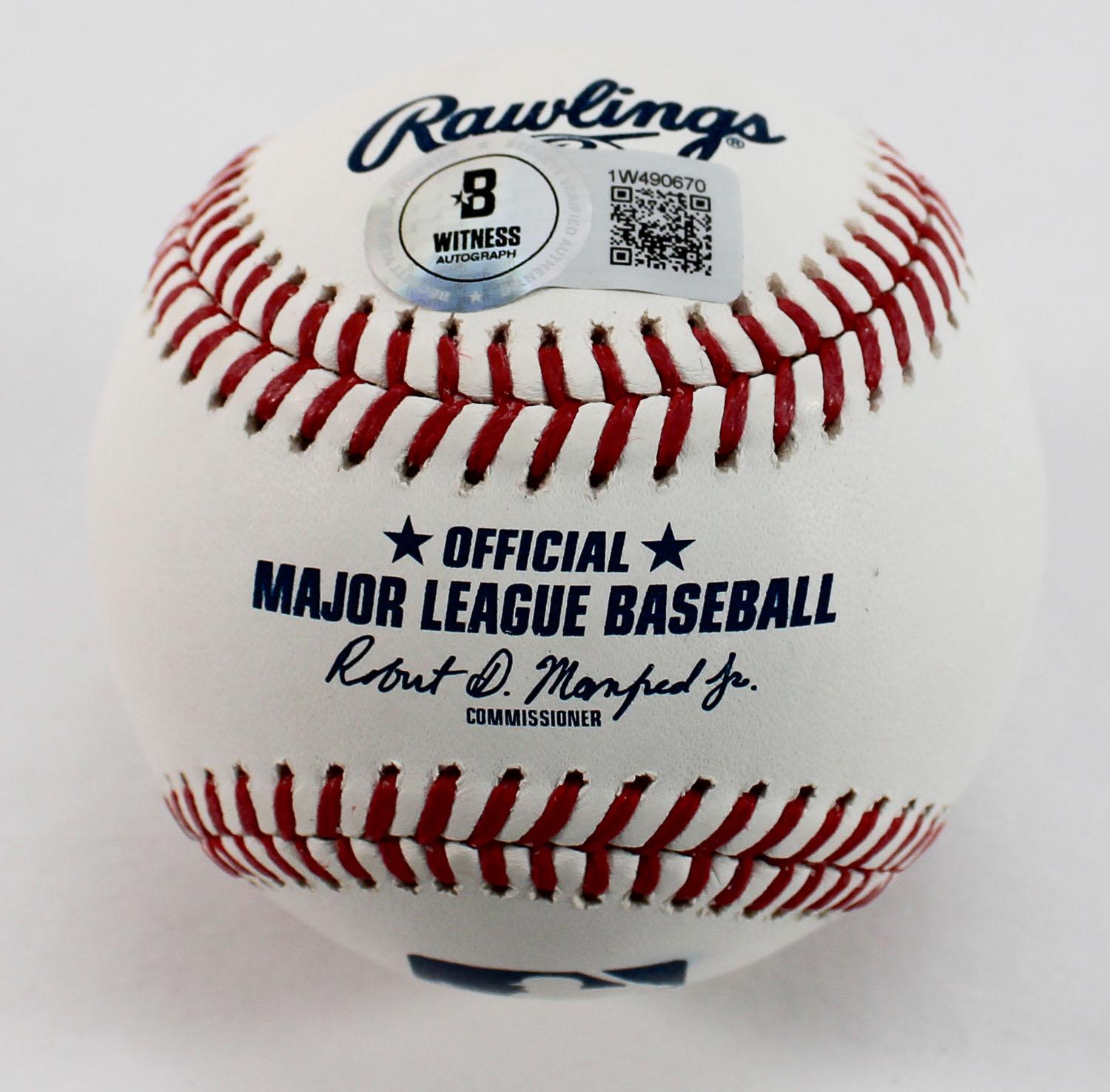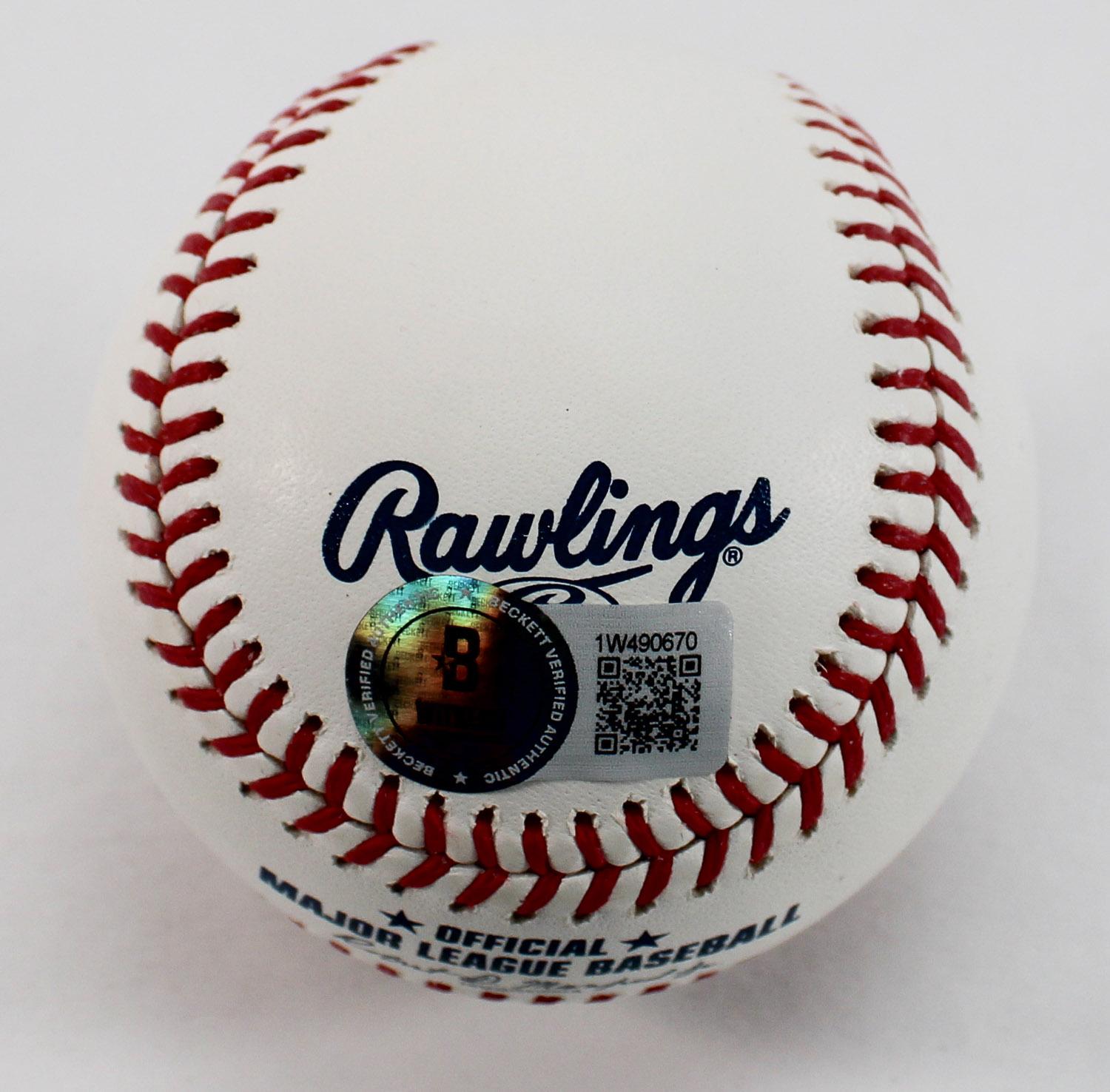 This autographed baseball has been personally hand-signed by Sebastian Walcott of the Texas Rangers. This autograph is certified by Beckett Authentication Services (BAS) Witness Certification. That means that a Beckett representative was present when this item was signed. It comes with the numbered authentication hologram with a QR code that verifies the authentication on the Beckett website. Please see all photos regarding the condition of this baseball.