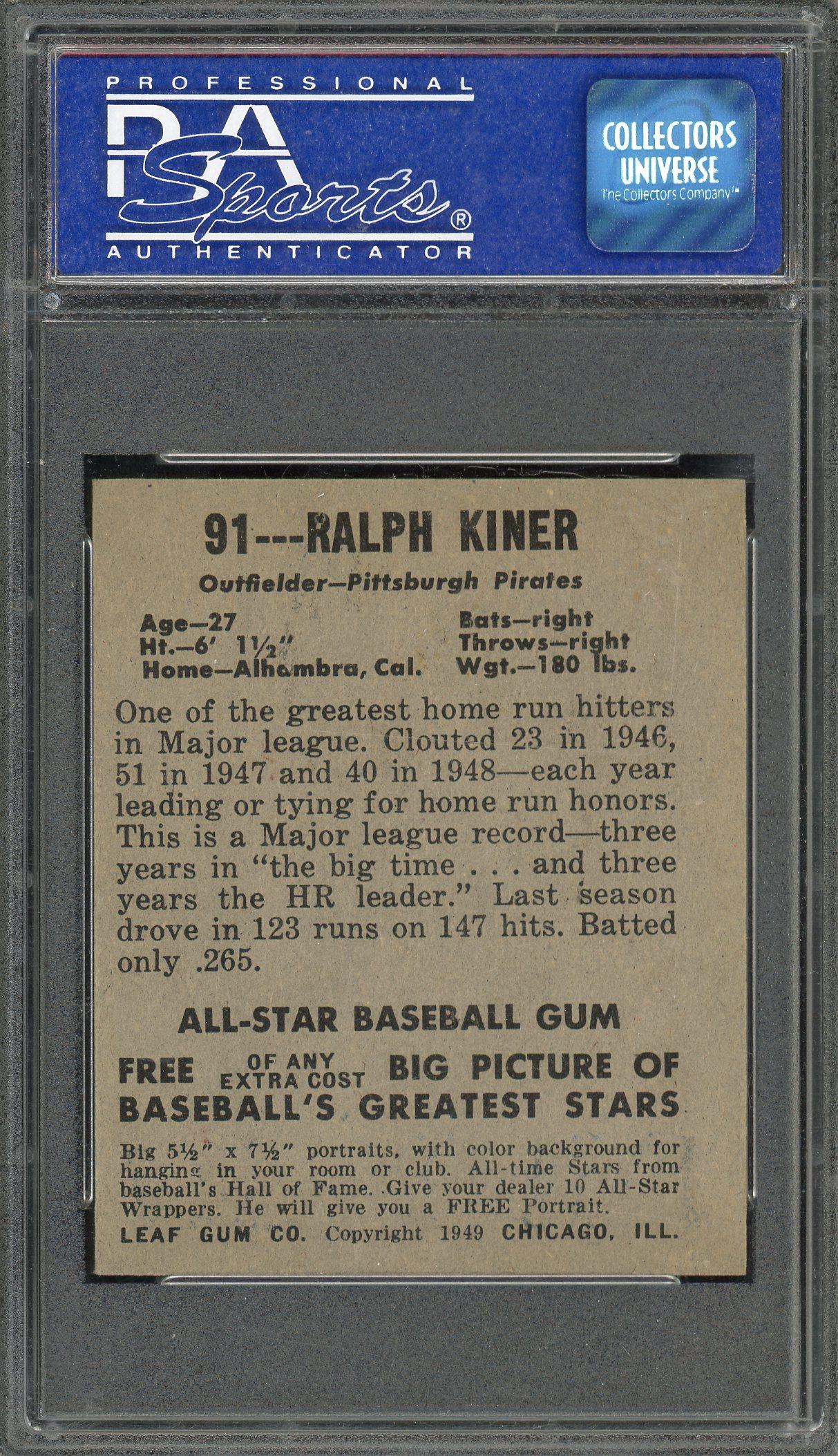 Ralph Kiner Pittsburgh Pirates 1948 Leaf Rookie Card #91. This card has been graded NM MT 8 by PSA (Professional Sports Authenticators).