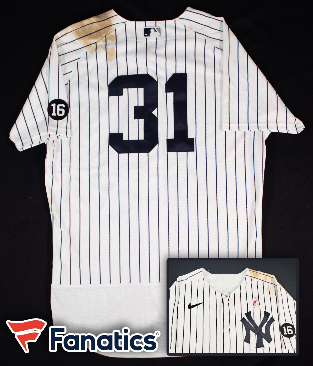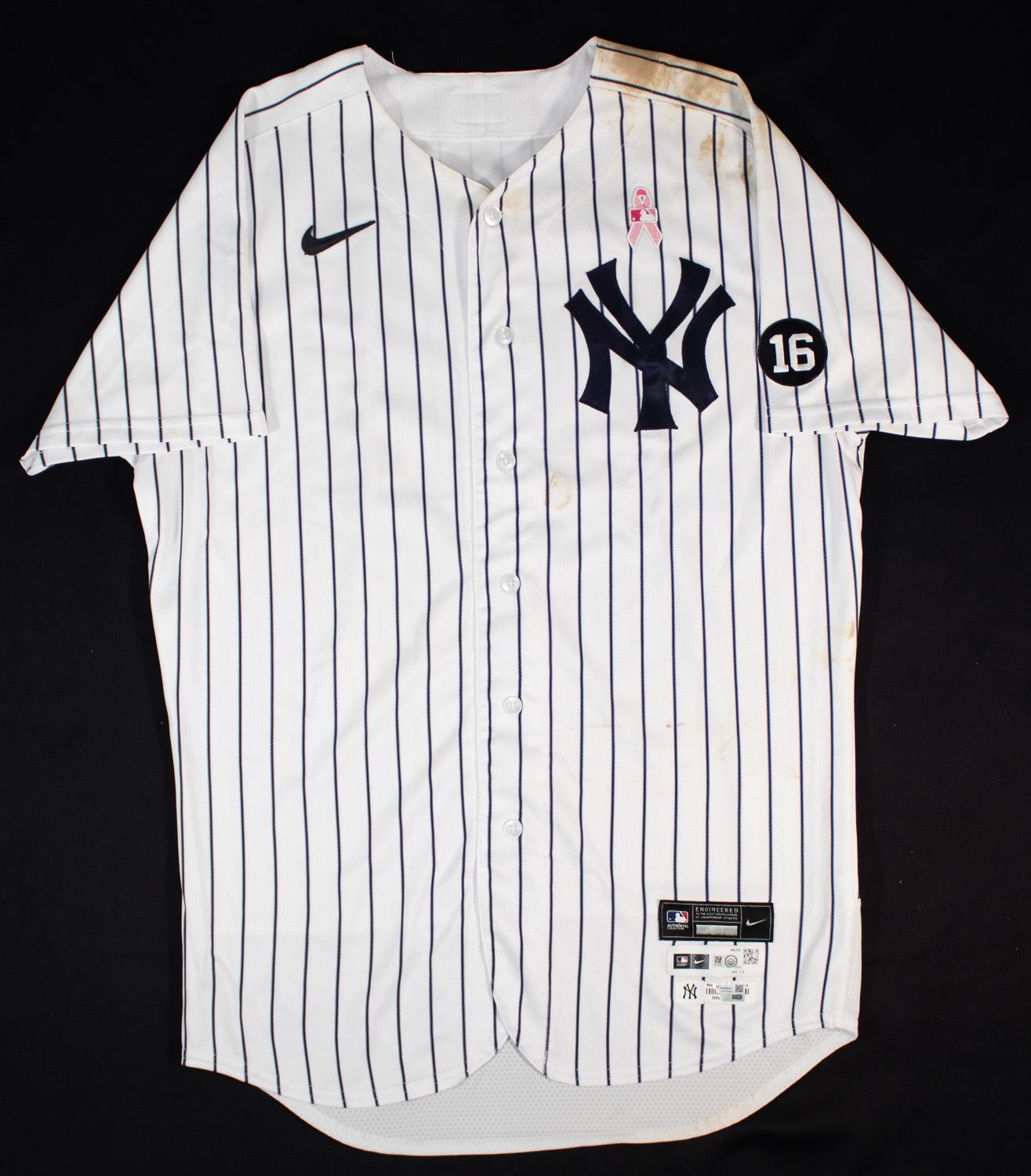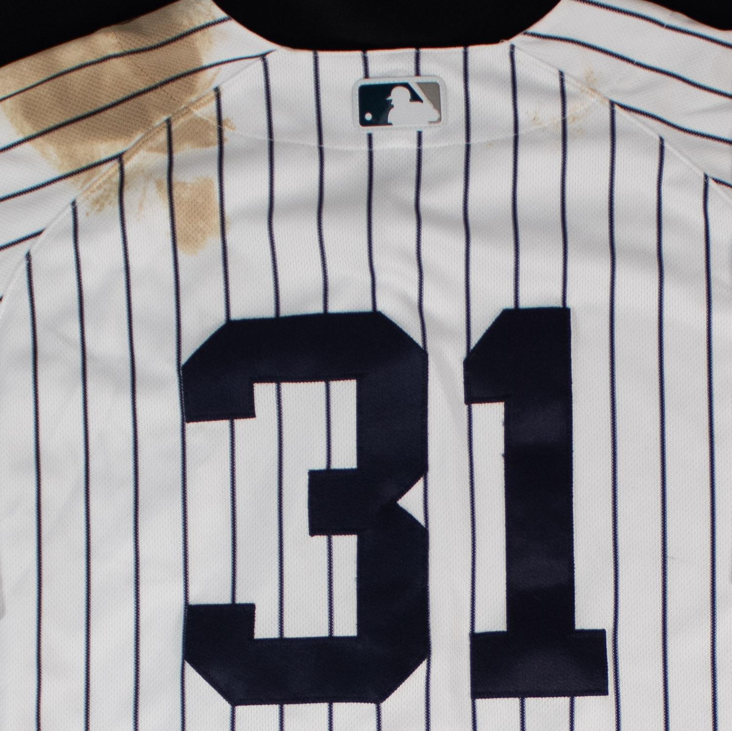 This Nike Engineered authentic on field jersey was worn by Aaron Hicks of the New York Yankees on May 9th, 2021. There are clear dirt stains showing the game use of this jersey. The Yankees won the game vs the Nationals 3-2 and Hicks went 1 for 3 with an RBI and a walk. The game use is certified by both Fanatics and MLB. It comes with the numbered holograms which can be verified on Fanatics.com and MLB.com.
