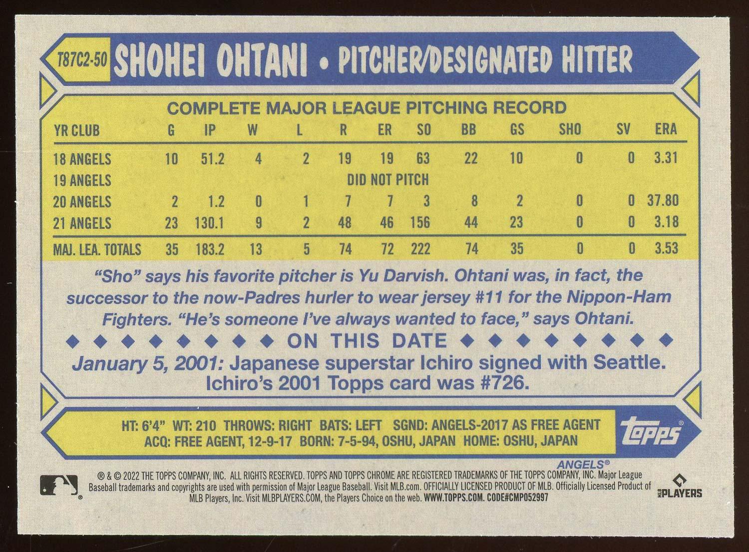Shohei Ohtani 2022 Topps Chrome Gold Mojo Card